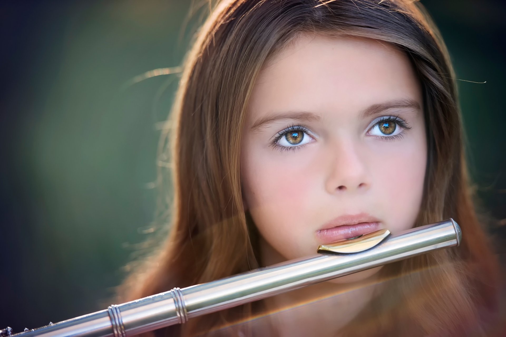 Ritratto di una ragazza con un flauto in raggi di soleRitratto di una ragazza con un flauto in raggi di sole
