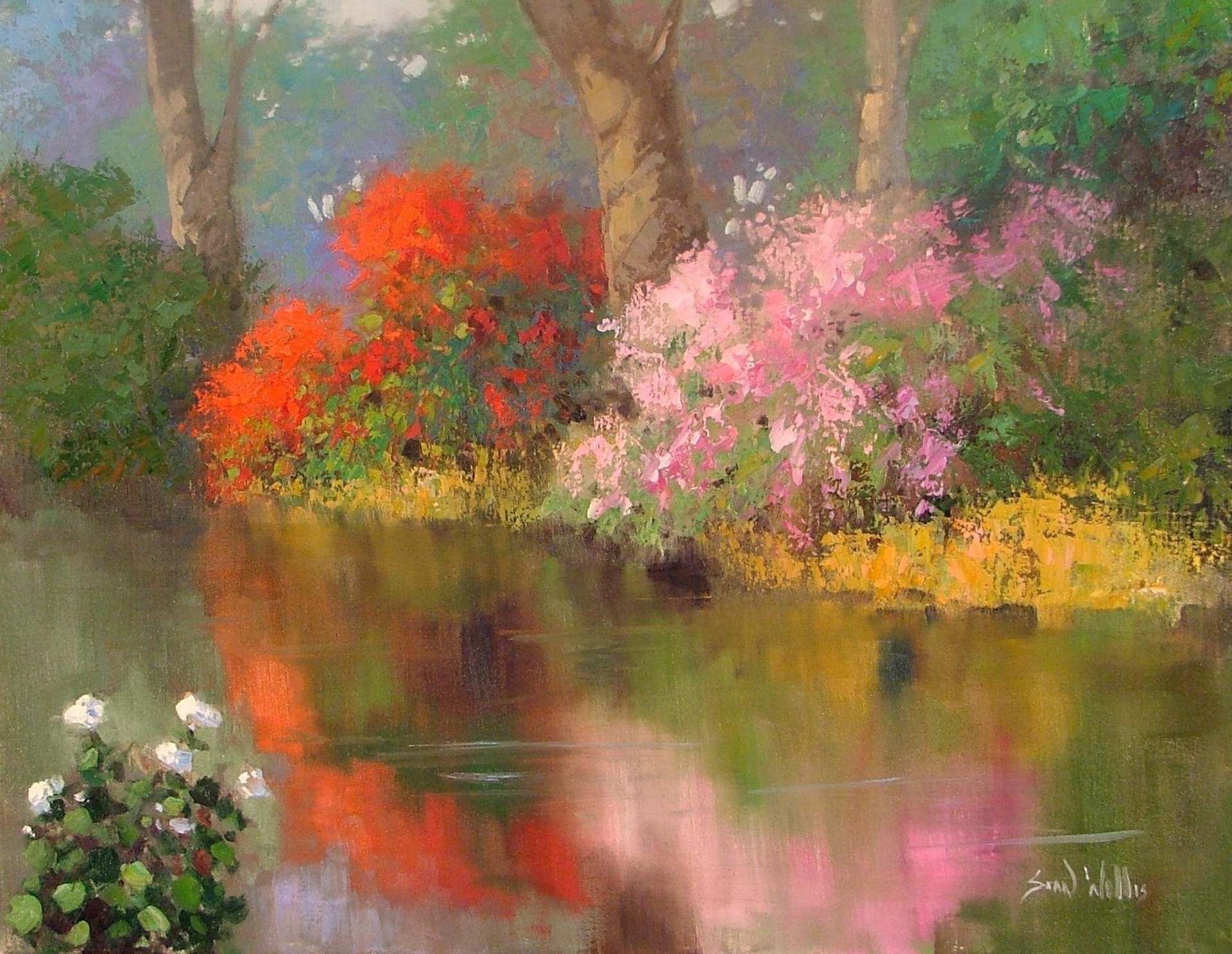 La casa sulla riva del fiume si riflette nell'acqua