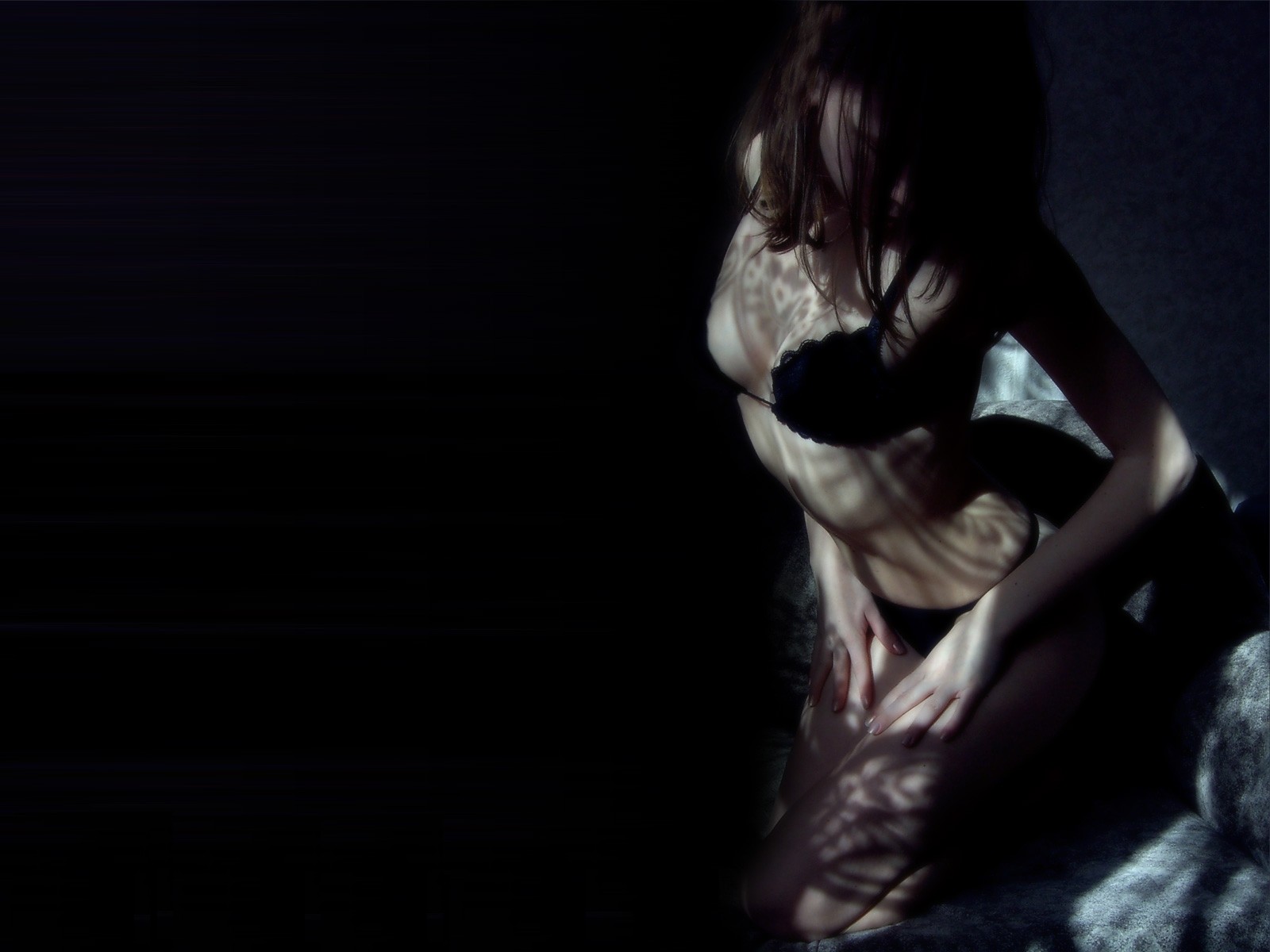 La luce della luna illumina la sagoma di una donna in una stanza buia