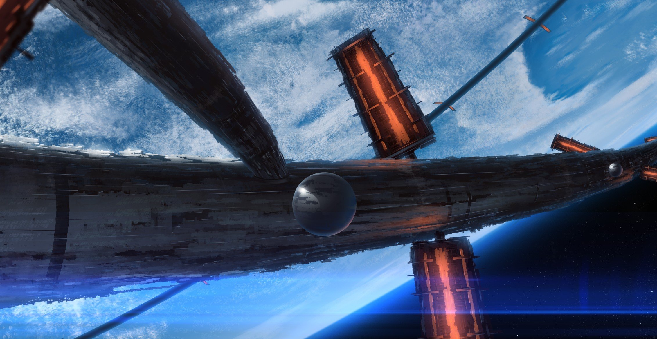 Stazione orbitale sullo sfondo della terra nell'universoStazione orbitale sullo sfondo della terra nell'universo
