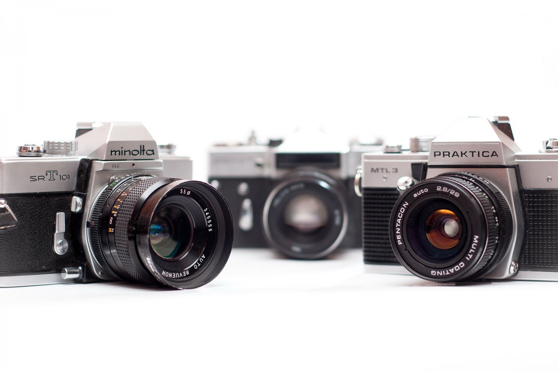 Coppia di telecamere macro su uno sfondo grigio monotonoCoppia di telecamere Macro su uno sfondo grigio monotono