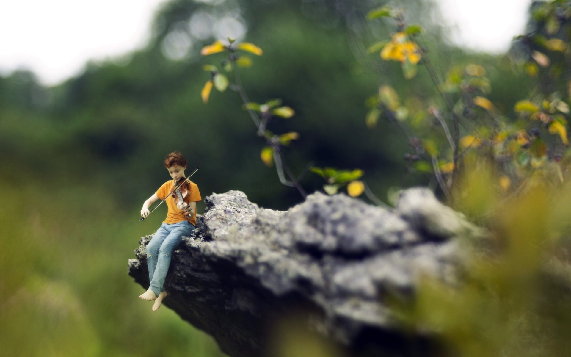 La ragazza in una corona suona il violino in un campoLa ragazza in una corona suona il violino in un campo