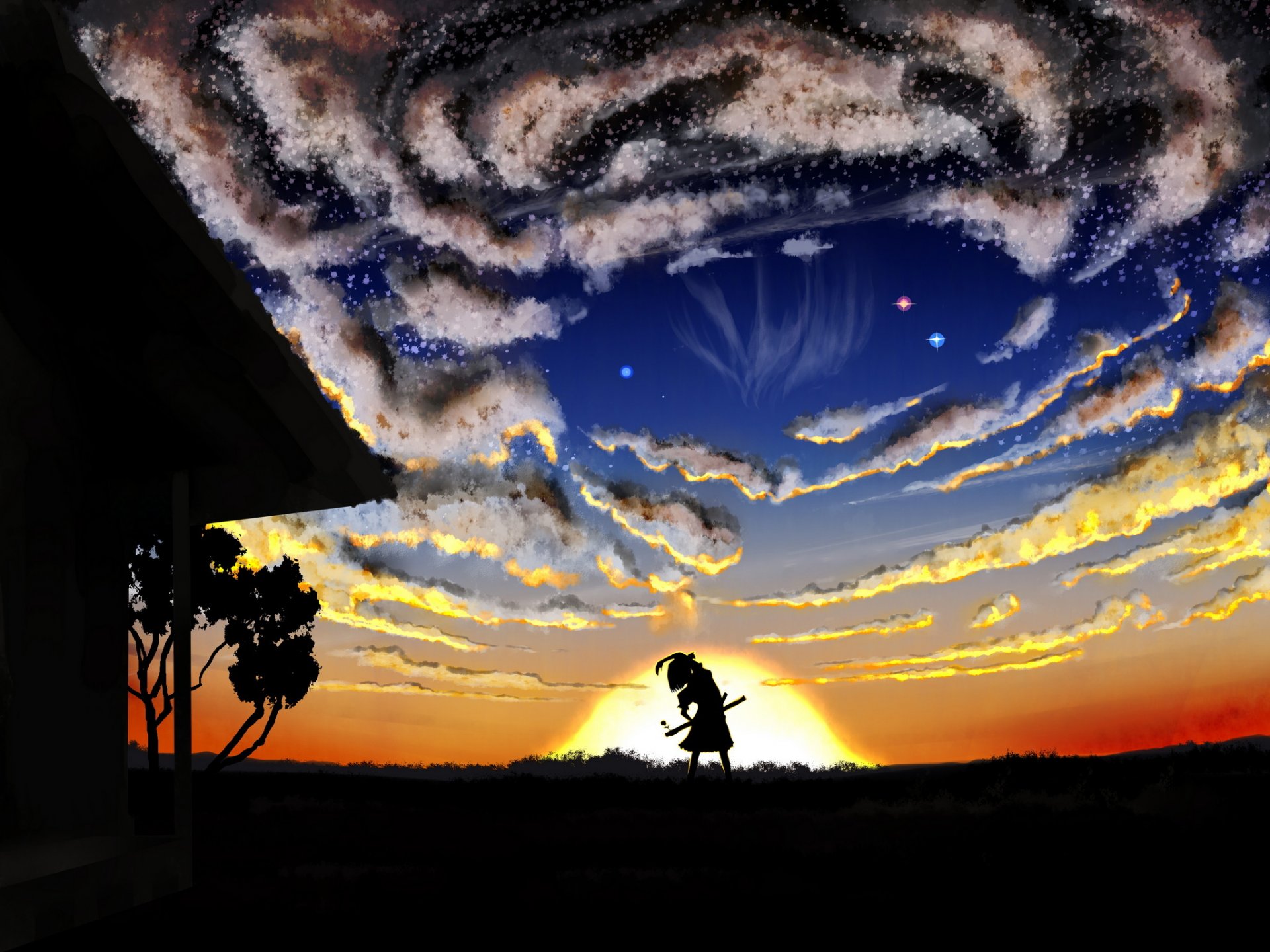 Albero sullo sfondo del tramonto serale