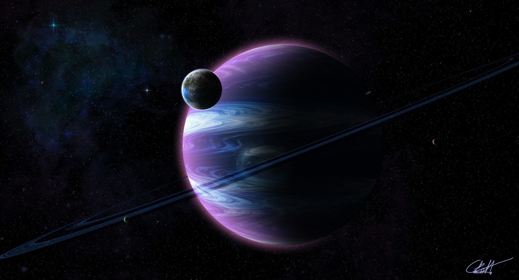 Un pianeta sconosciuto e il suo satellite nello spazio
