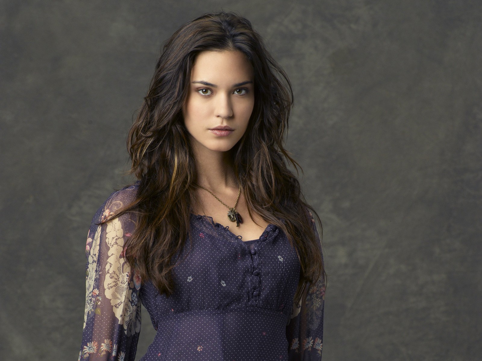 Bruna con sguardo languido e scollatura su sfondo bianco