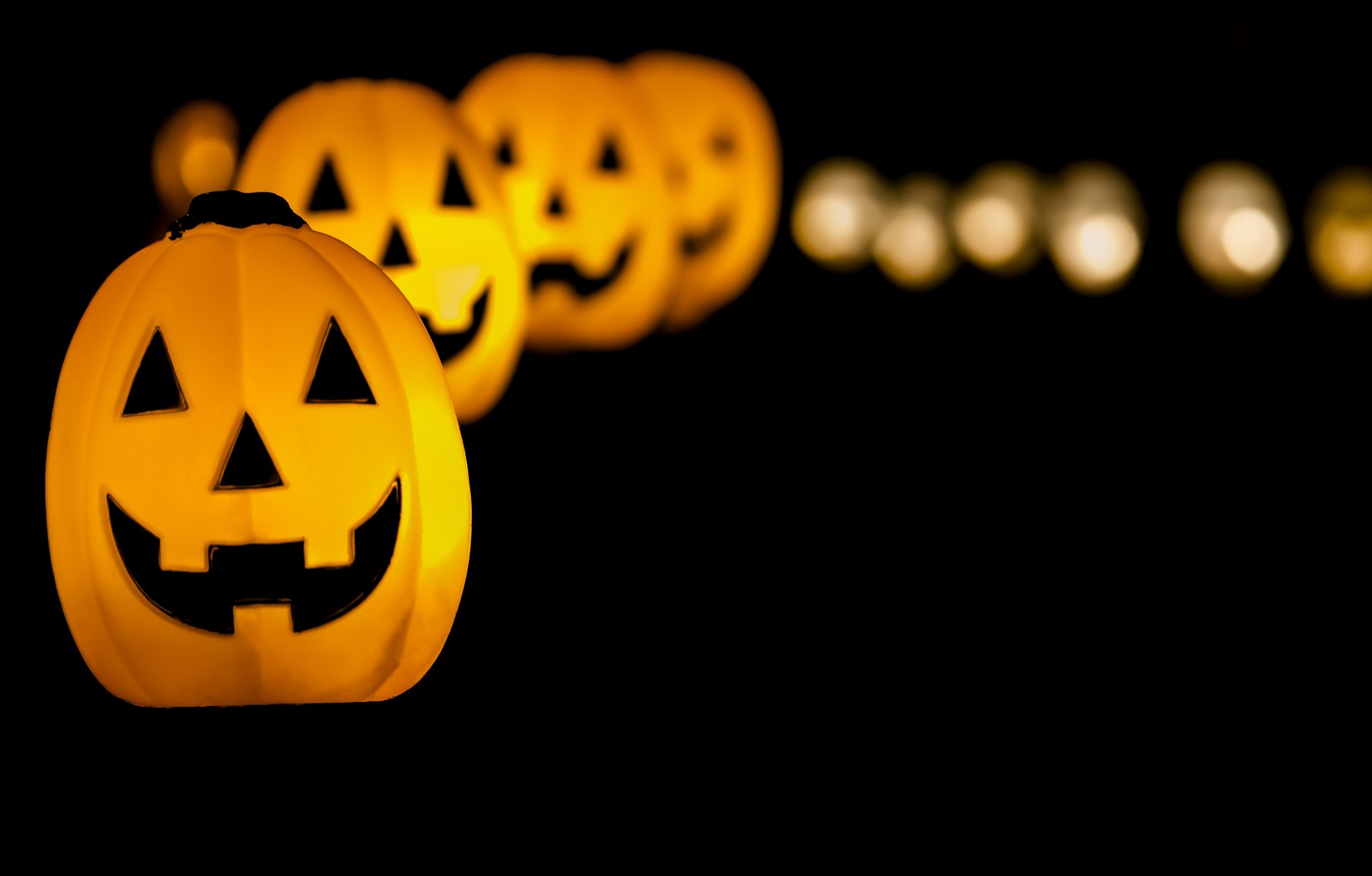 Illustrazione di Halloween. Ragazza con zucche e gatti