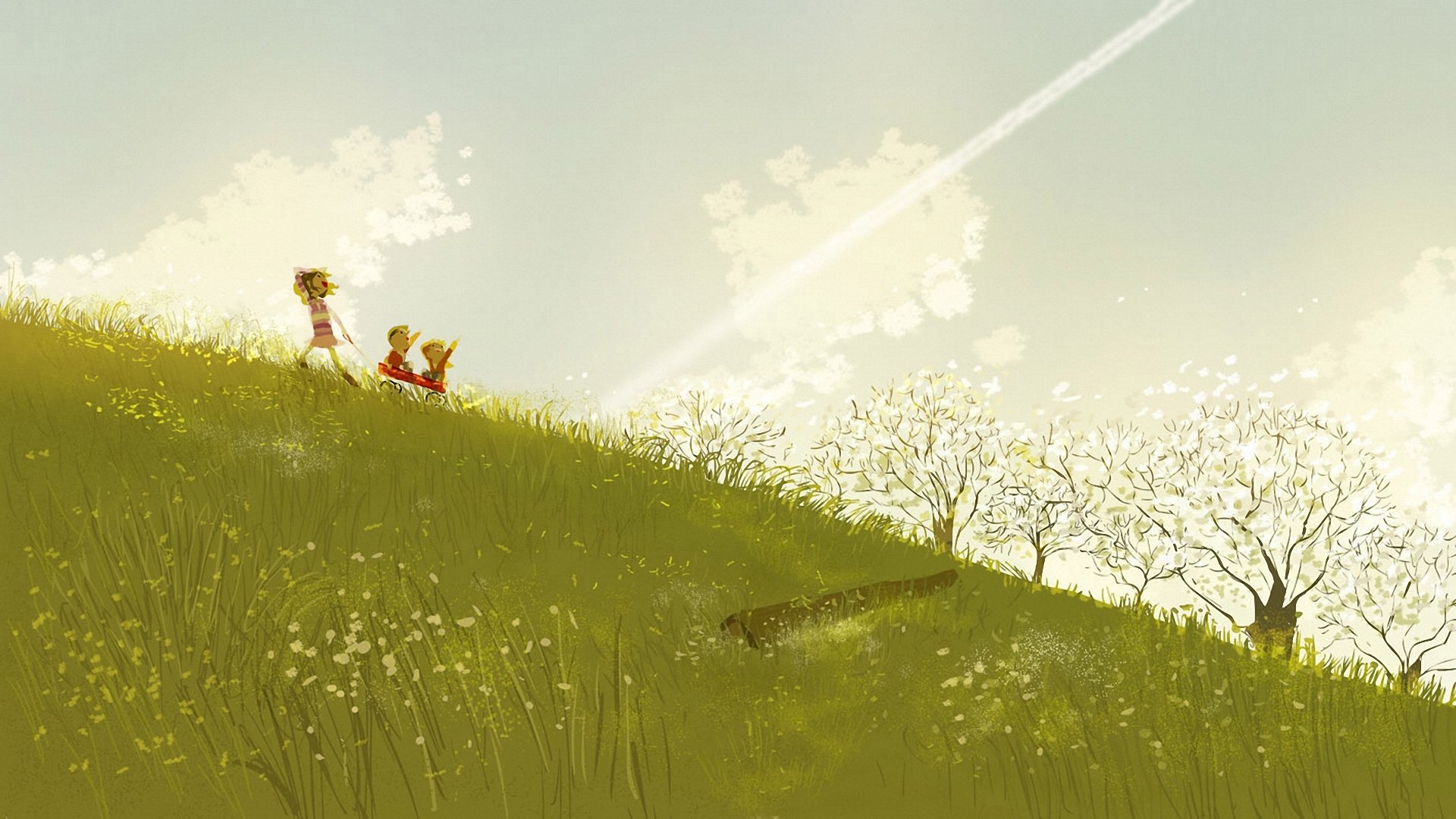 Il dipinto raffigura bambini con genitori in vacanzaIl dipinto raffigura bambini con genitori in vacanza