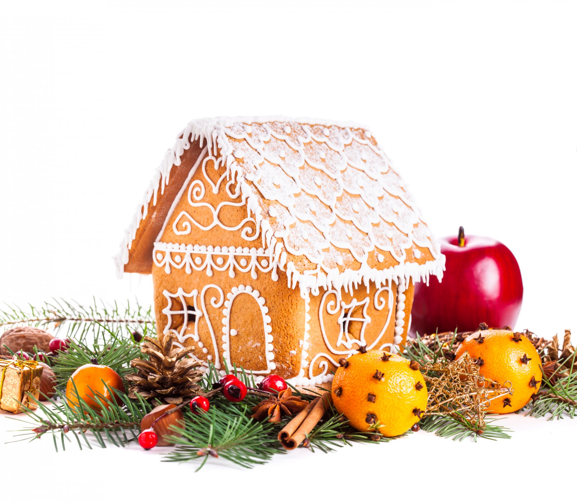 Tre giocattoli di natale rossi e un omino di pan di zenzeroTre giocattoli di Natale rossi e un omino di pan di zenzero