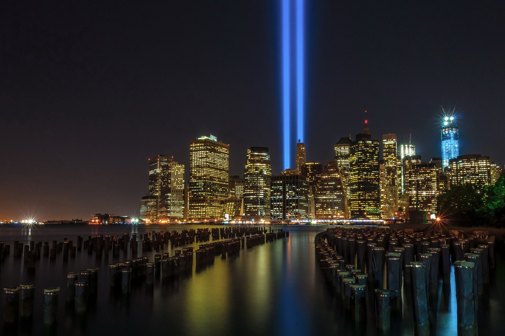 Serata a new york con il ponte di brooklyn illuminato da ghirlandeSerata a New York con il ponte di Brooklyn illuminato da ghirlande