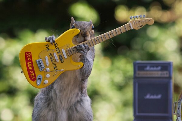 Scoiattolo con giallo concerto di chitarra elettricaScoiattolo con giallo concerto di chitarra elettrica