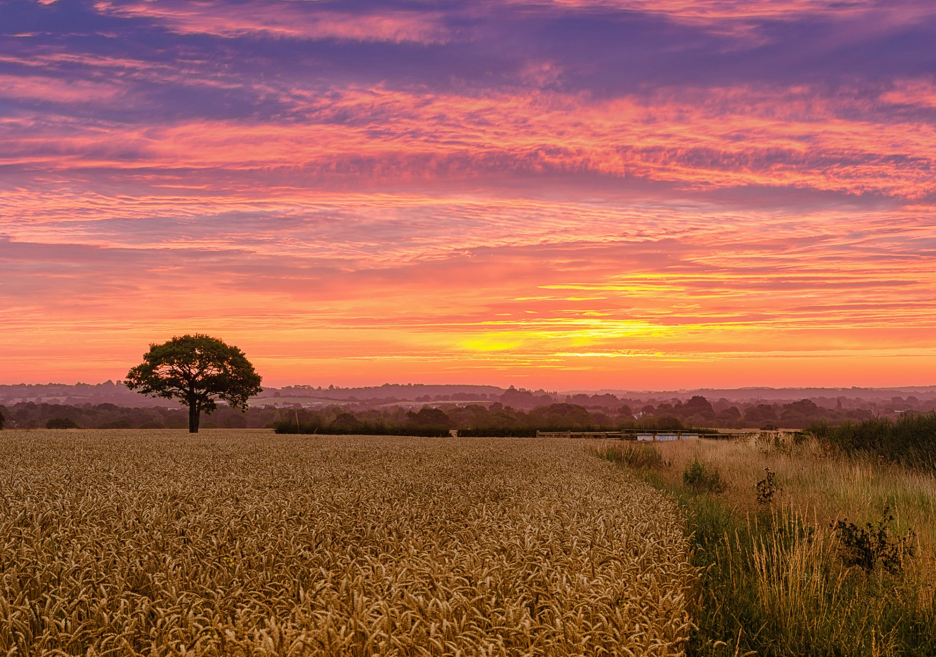Campo di grano contro il cielo al tramonto