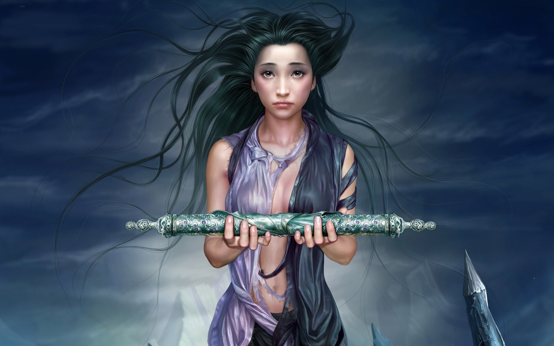 Una ragazza con i capelli scuri tiene in mano un'arma