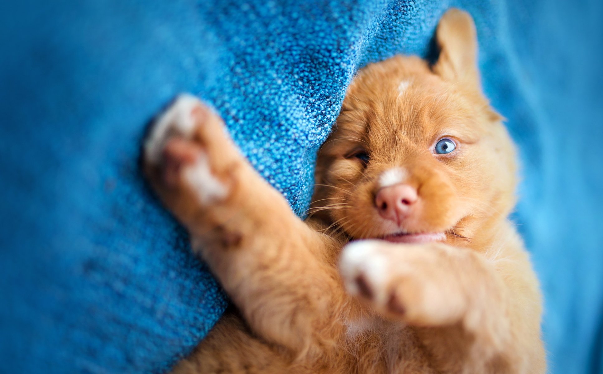 Cucciolo rosso con gli occhi azzurri