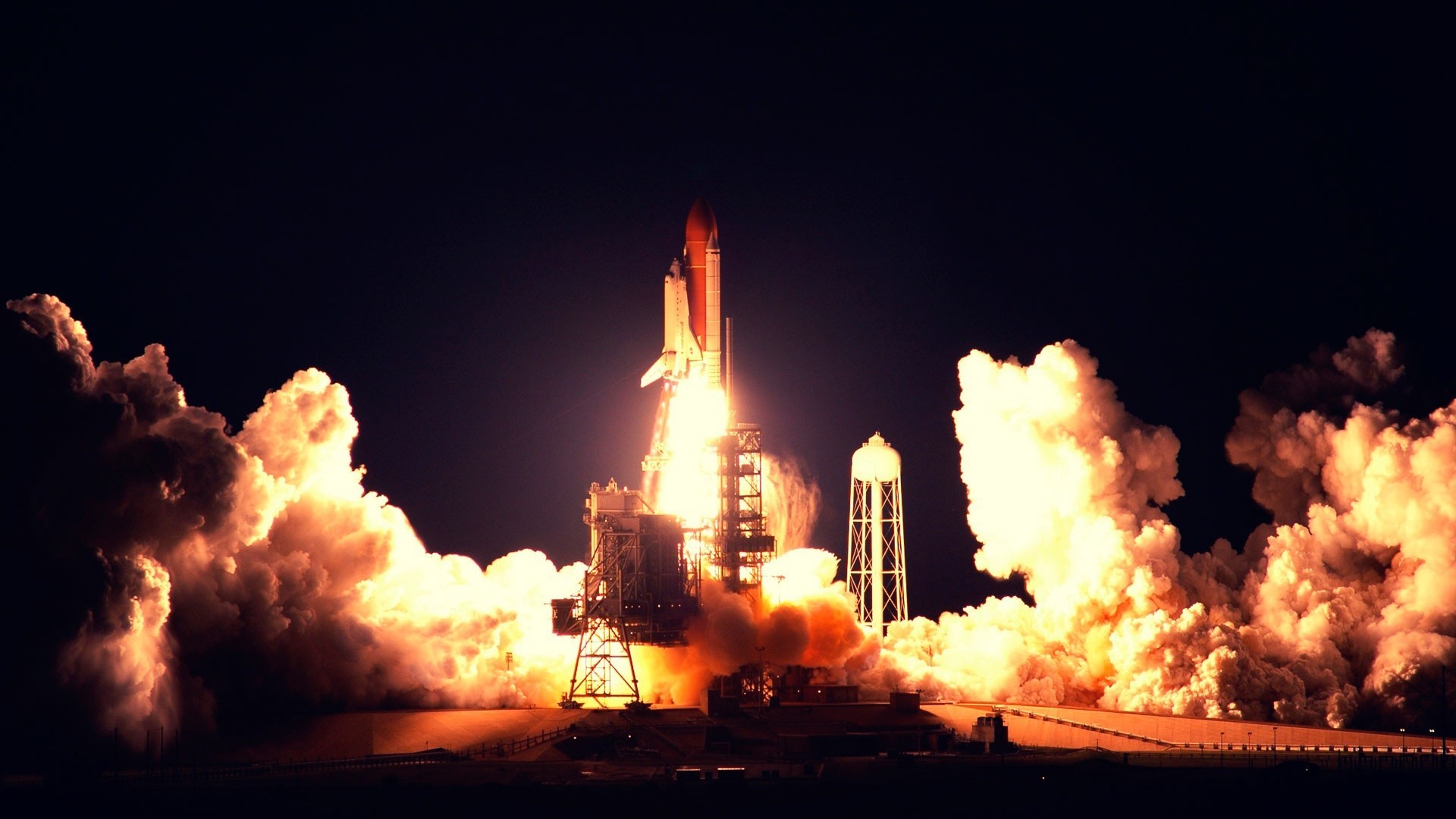 Vista del lancio della navetta dalla riva del lagoVista del lancio della navetta dalla riva del Lago