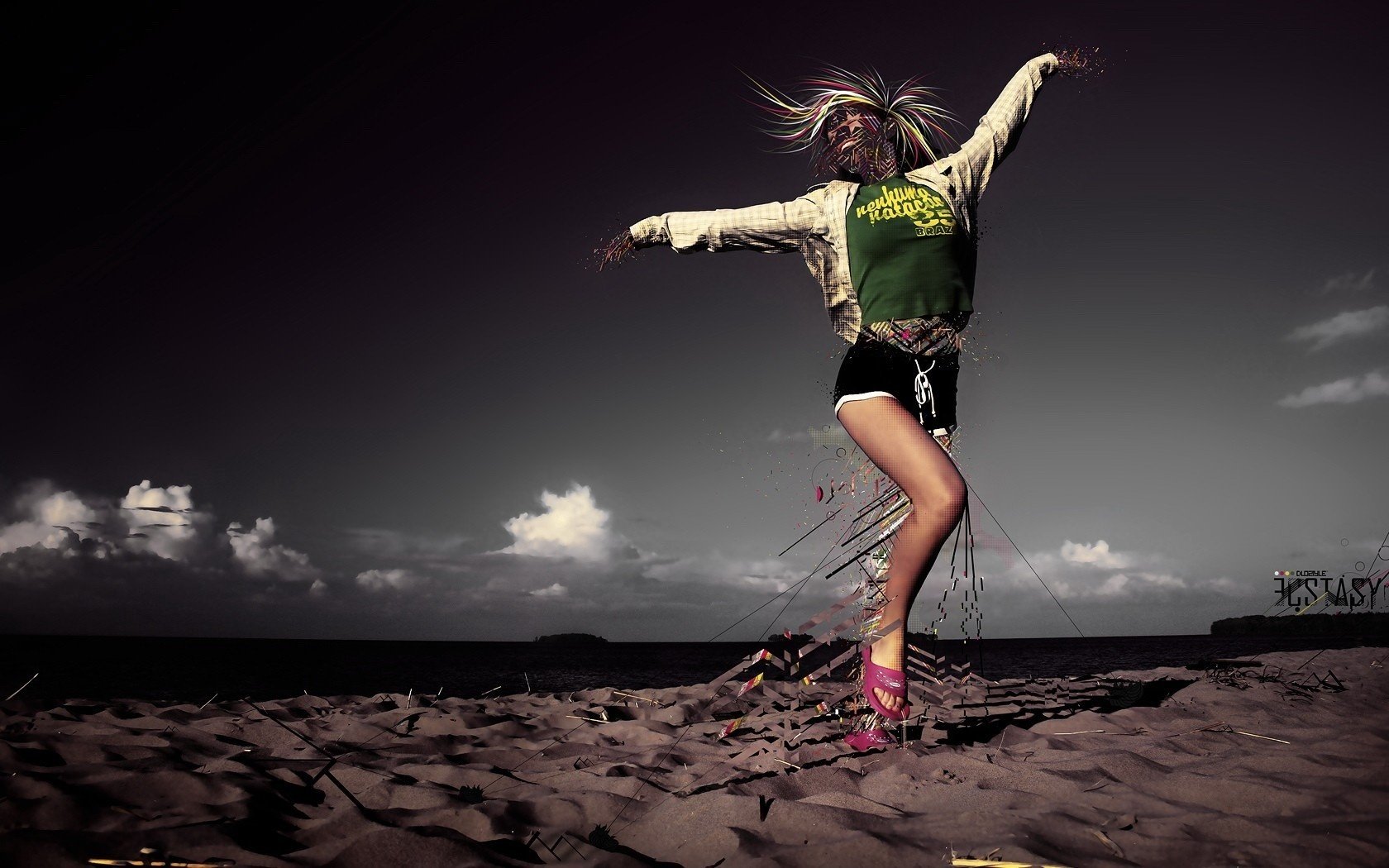 Modello di ragazza sulla sabbia rossa estate spiaggiaModello di ragazza sulla sabbia rossa estate spiaggia