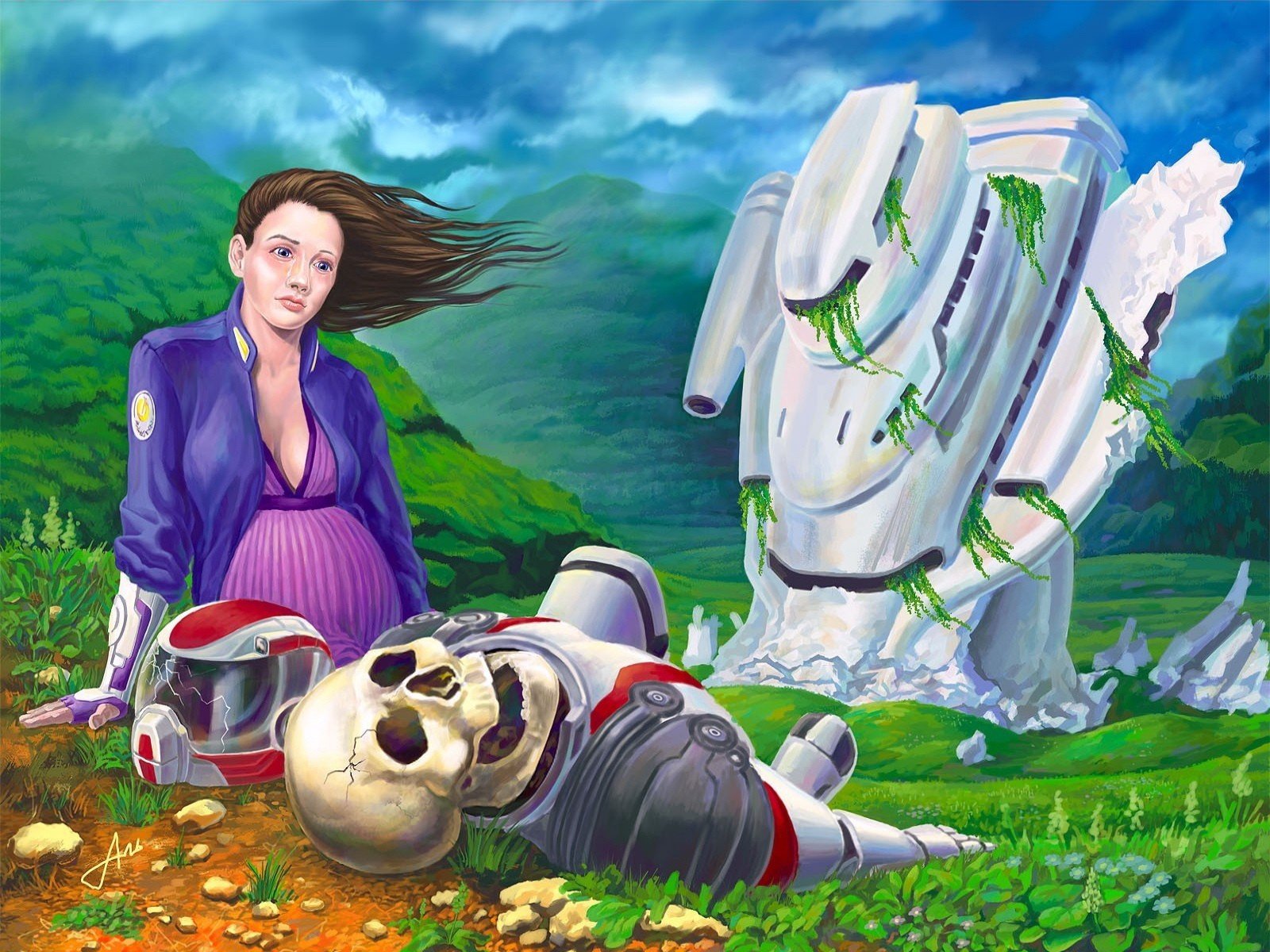 Disegno di una ragazza a karabl dopo il disastro