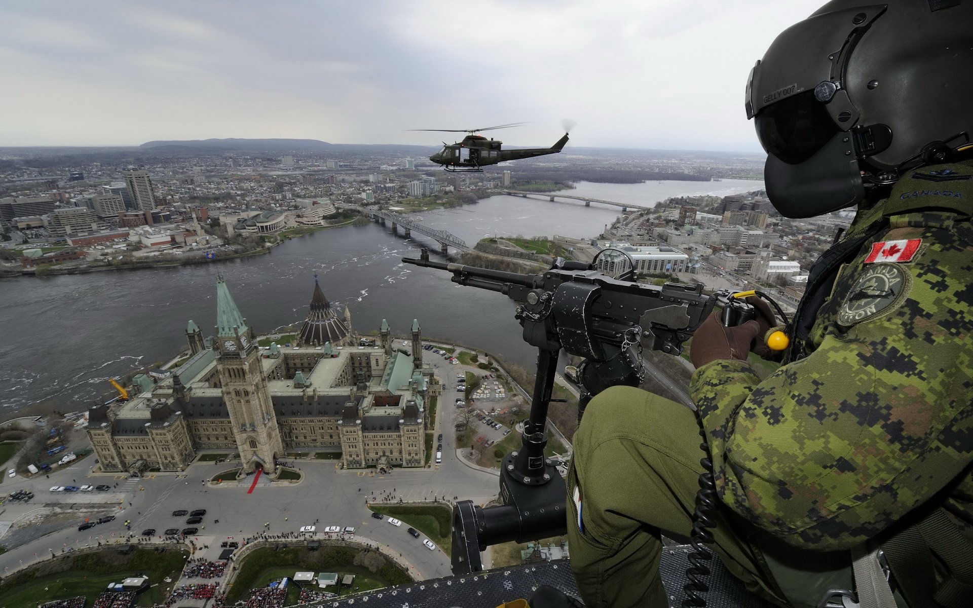 Soldato con le armi si fa strada attraverso la foresta selvaggia