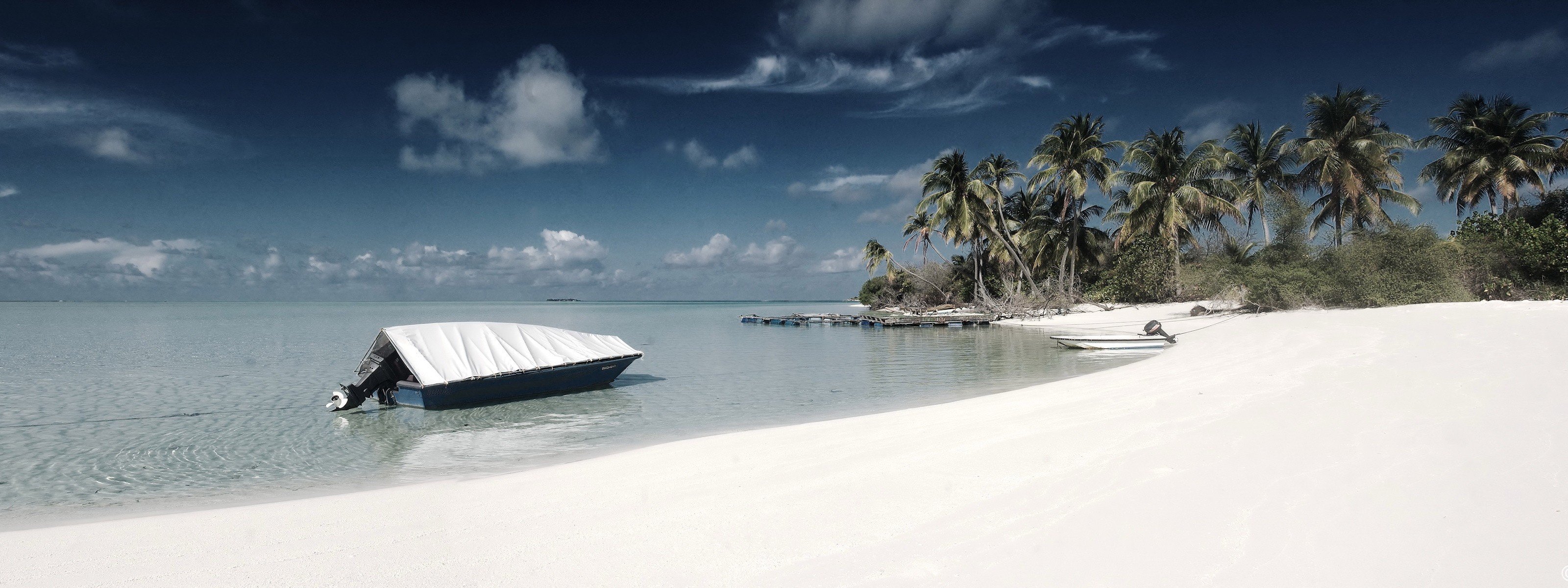 Barca a vela sulla riva del mare su uno sfondo di cielo con nuvole