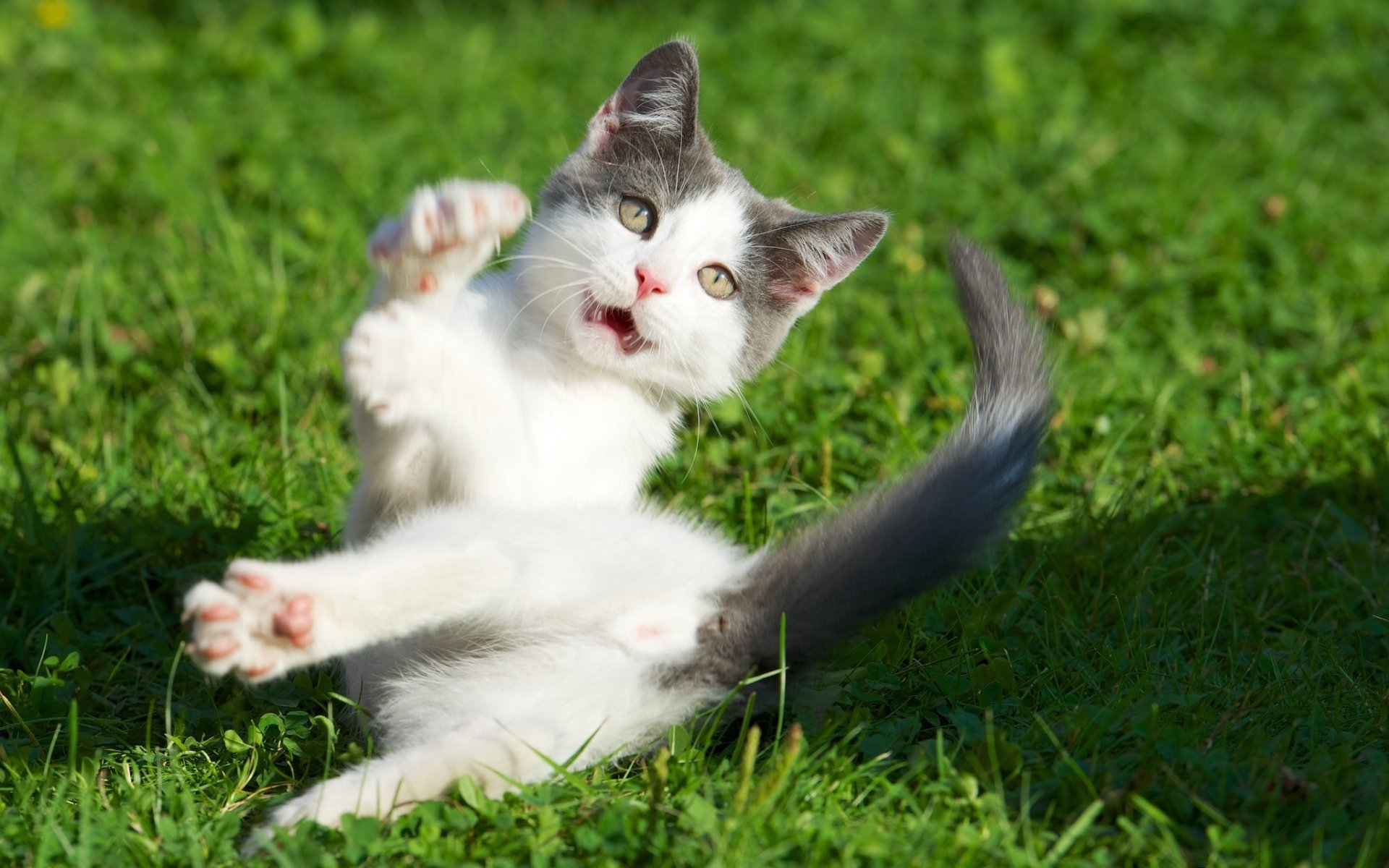 I fili d'erba hanno sottolineato l'aspetto intelligente del gatto
