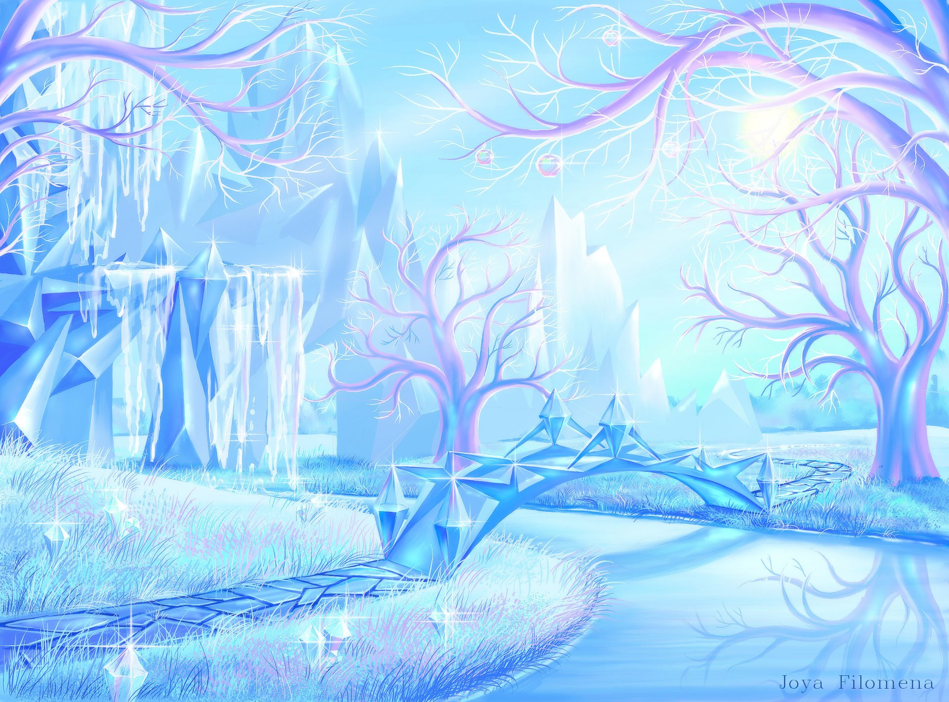 Una favolosa foresta invernale incatenata dal ghiaccio blu