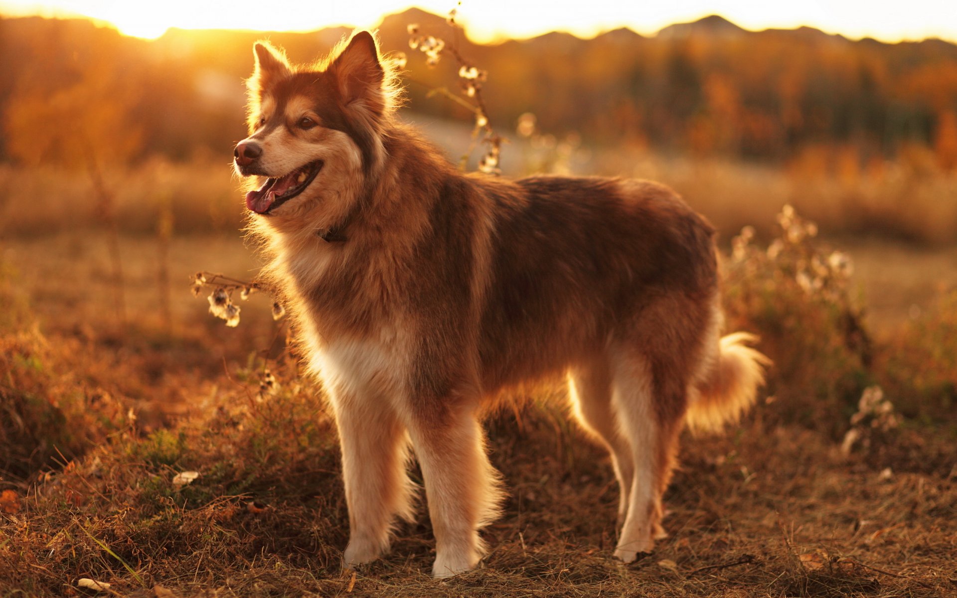 Cane sullo sfondo della foresta autunnale