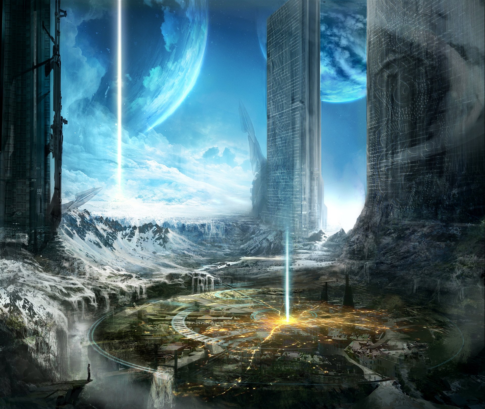 Superficie del pianeta e cratere. stelle nello spazioSuperficie del pianeta e cratere. Stelle nello spazio
