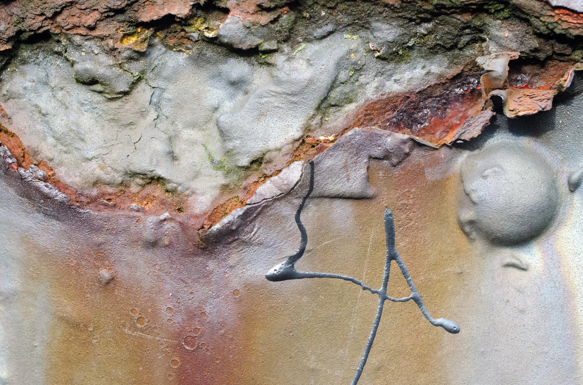 Le vernici cremisi, rosse, bianche, nere vengono utilizzate per scrivere questa tela