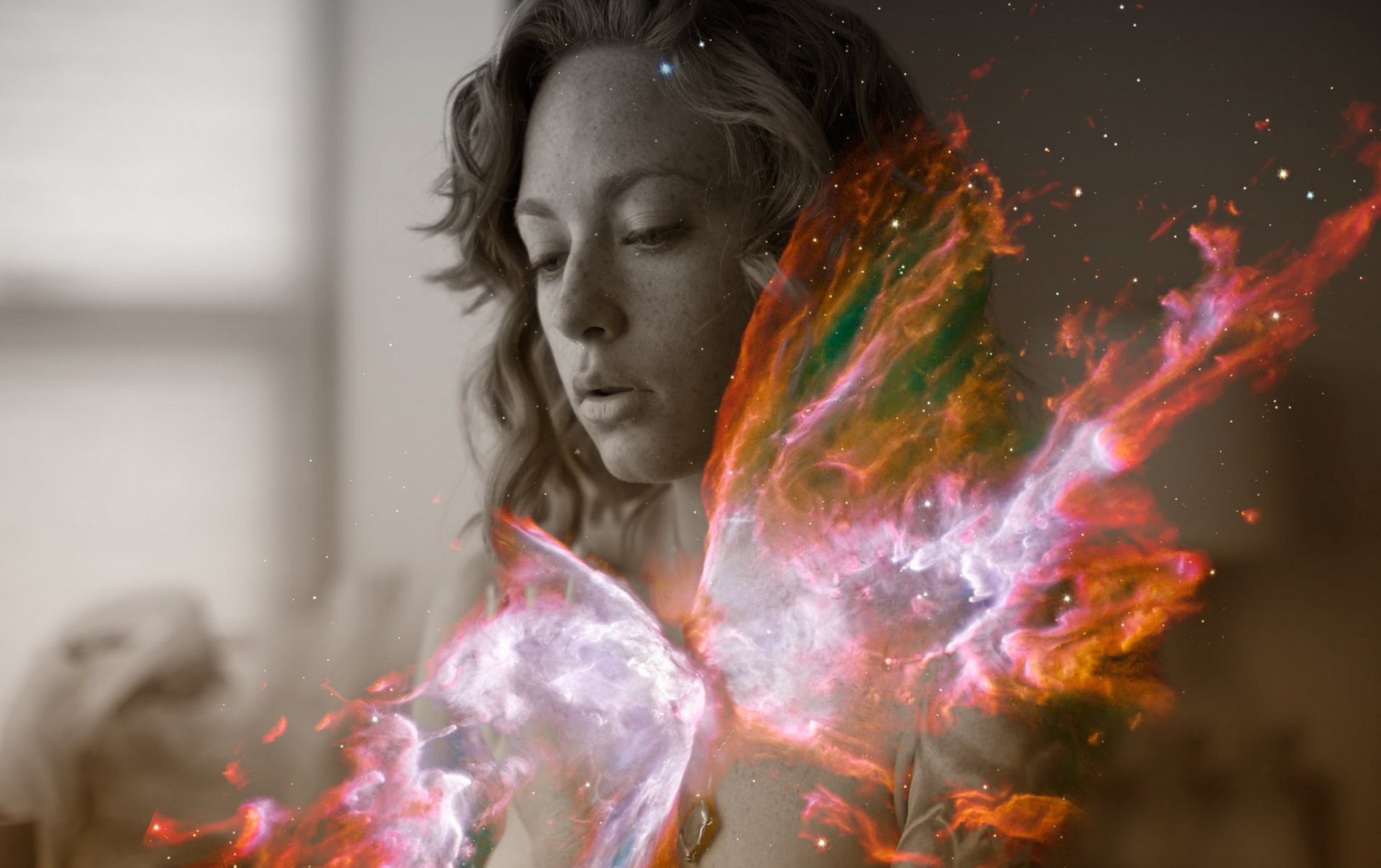 Esplosione di colore sullo sfondo di un'immagine monocromatica di una ragazzaEsplosione di colore sullo sfondo di un'immagine monocromatica di una ragazza