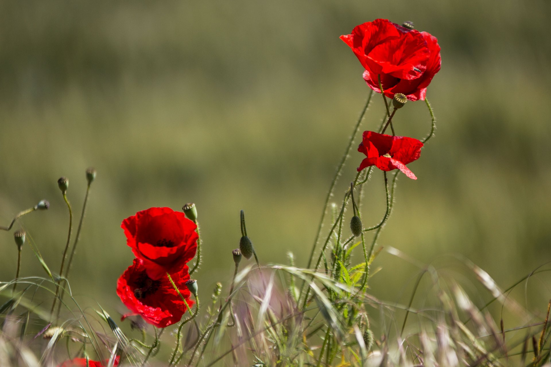 Papaveri in un campo nel vento