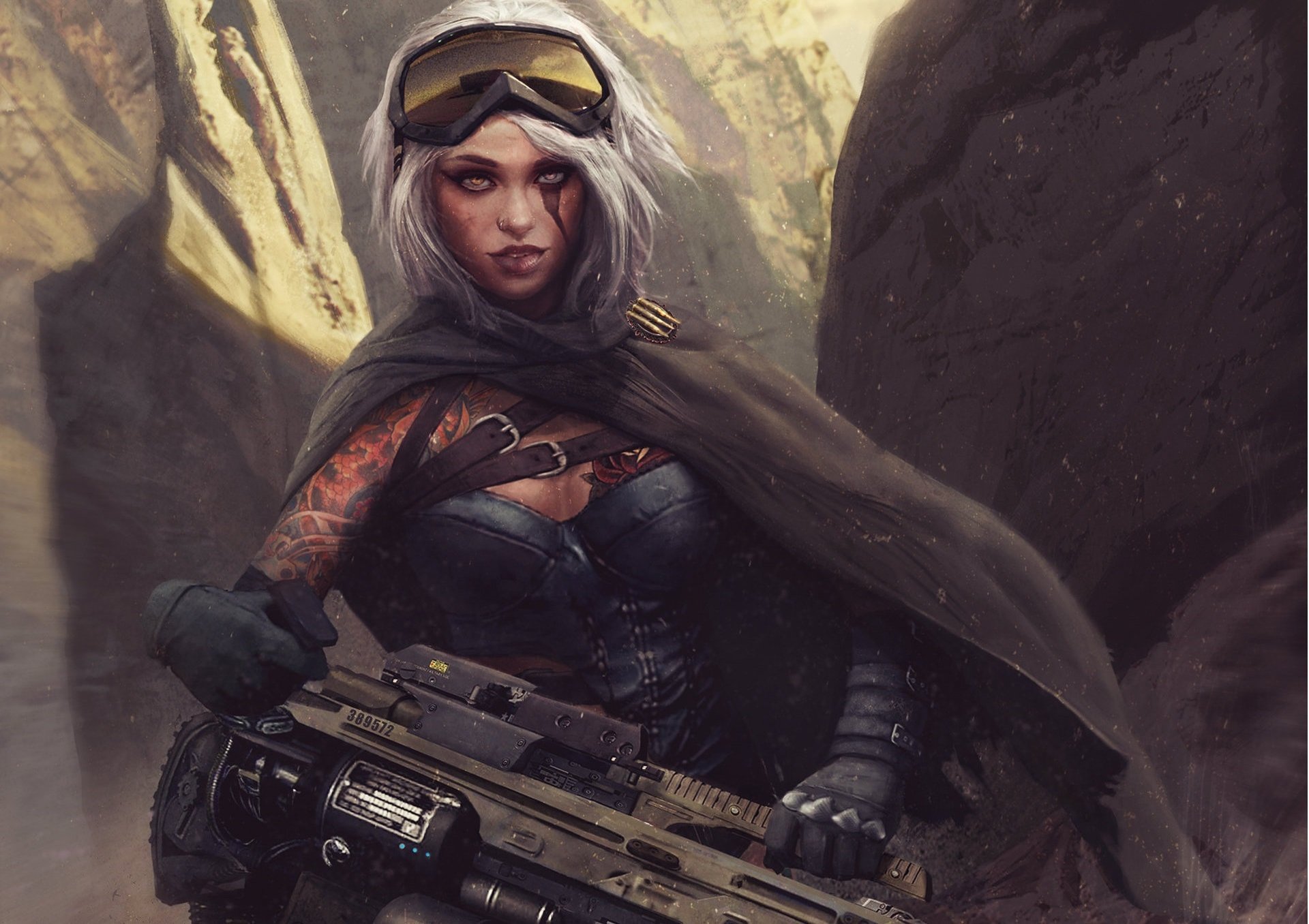Guerriero tatuato con armi