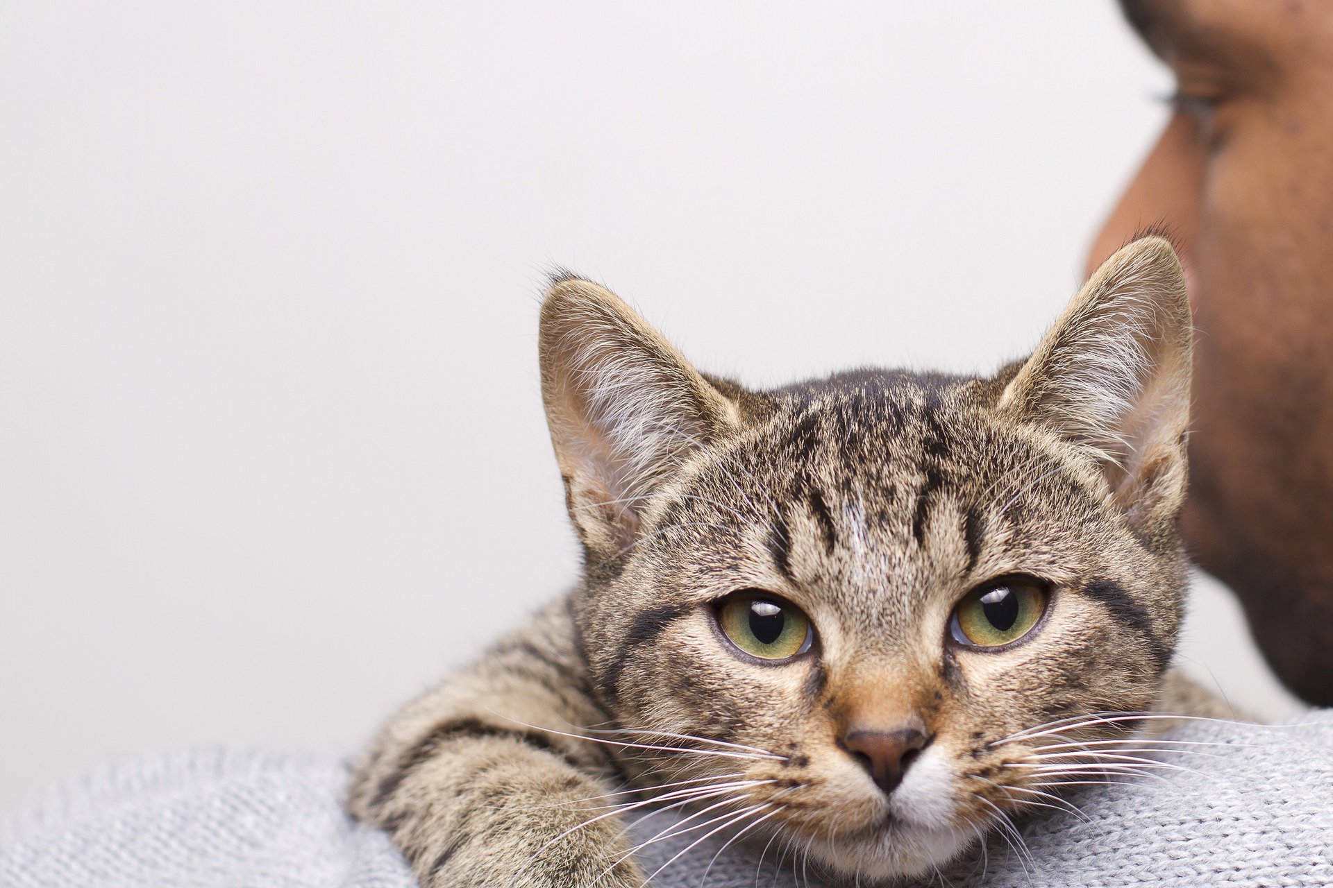 Gatto grigio con gli occhi verdi