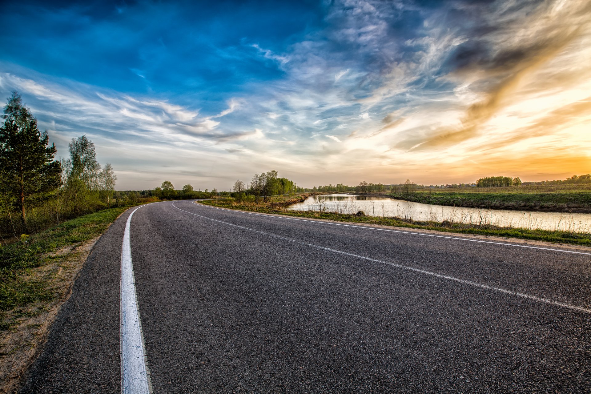 La strada lungo il campo di papavero sotto i raggi del sole estivoLa strada lungo il campo di papavero sotto i raggi del sole estivo