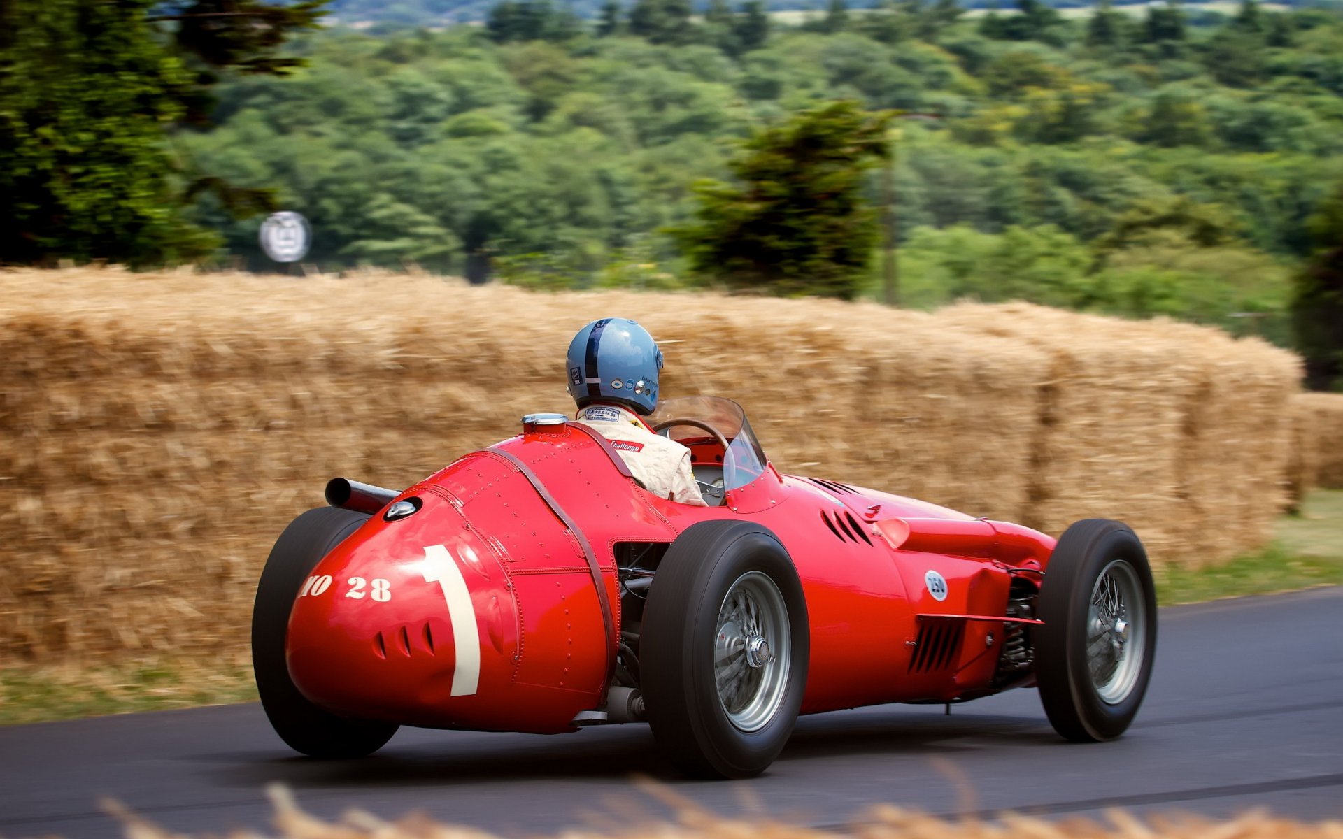Maserati sportivo rosso con fari accesi di notte sullo sfondo della città