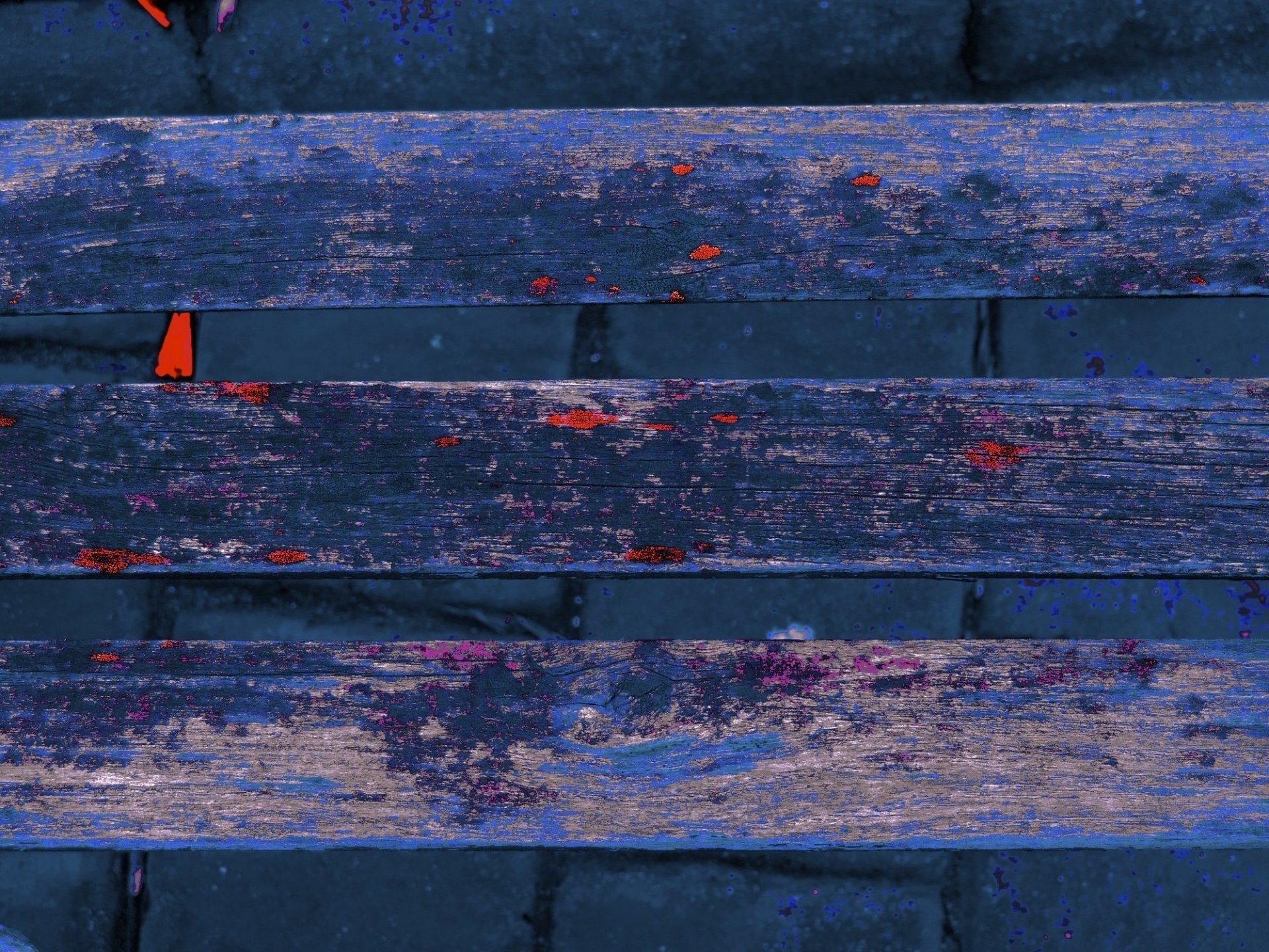 Tavole sfilacciate sullo sfondo di un muro di mattoni