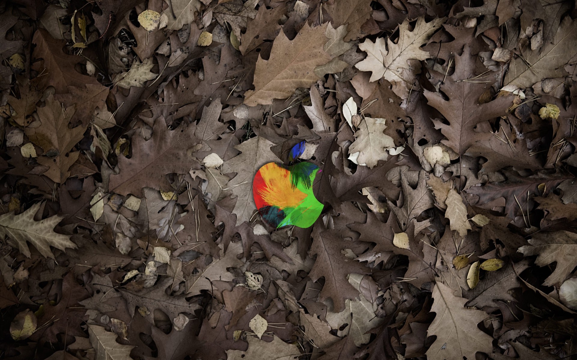 Mela astratta su sfondo di foglie di quercia