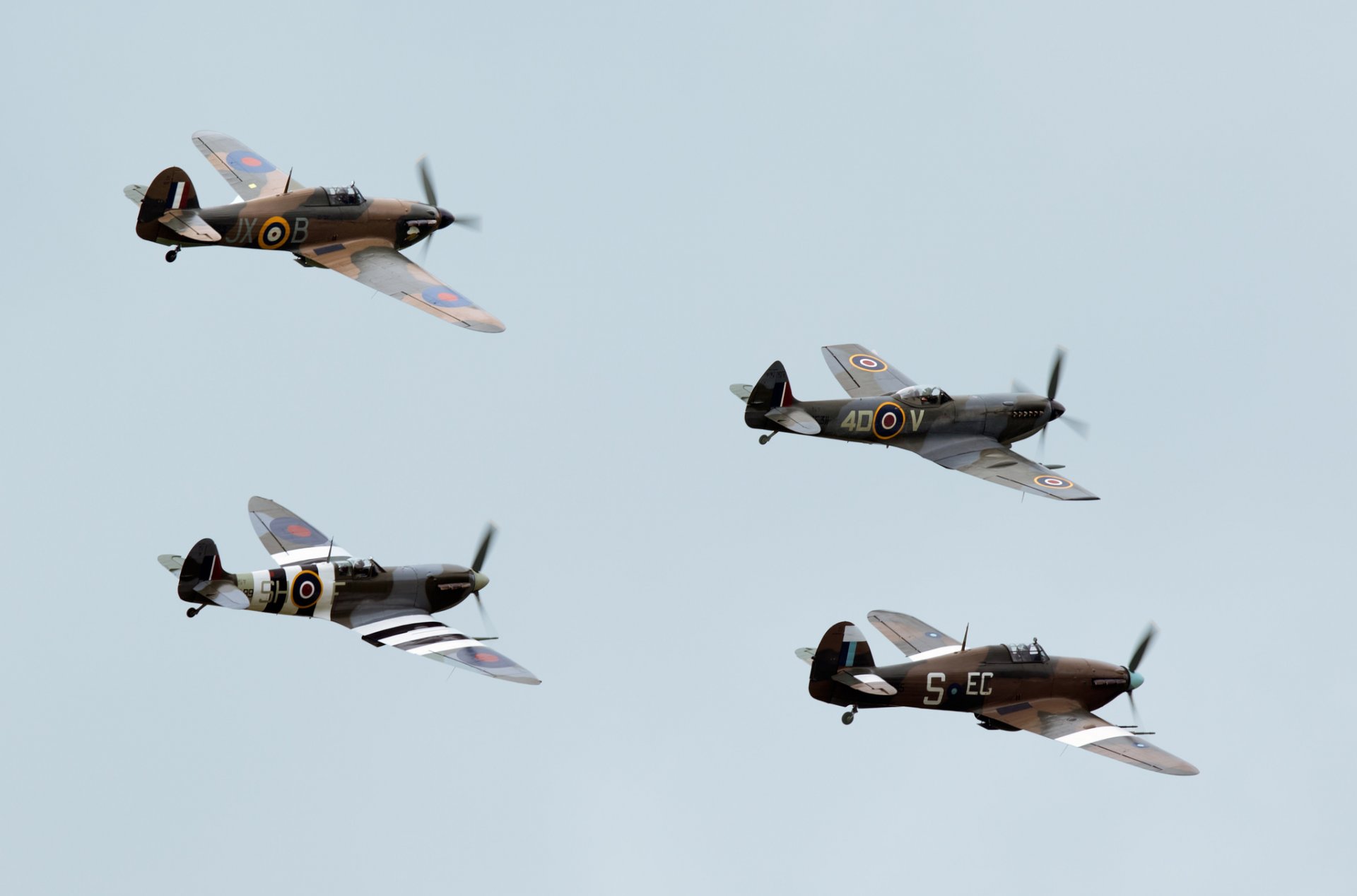 Combattenti militari britannici nel cielo al tramontoCombattenti militari britannici nel cielo al tramonto