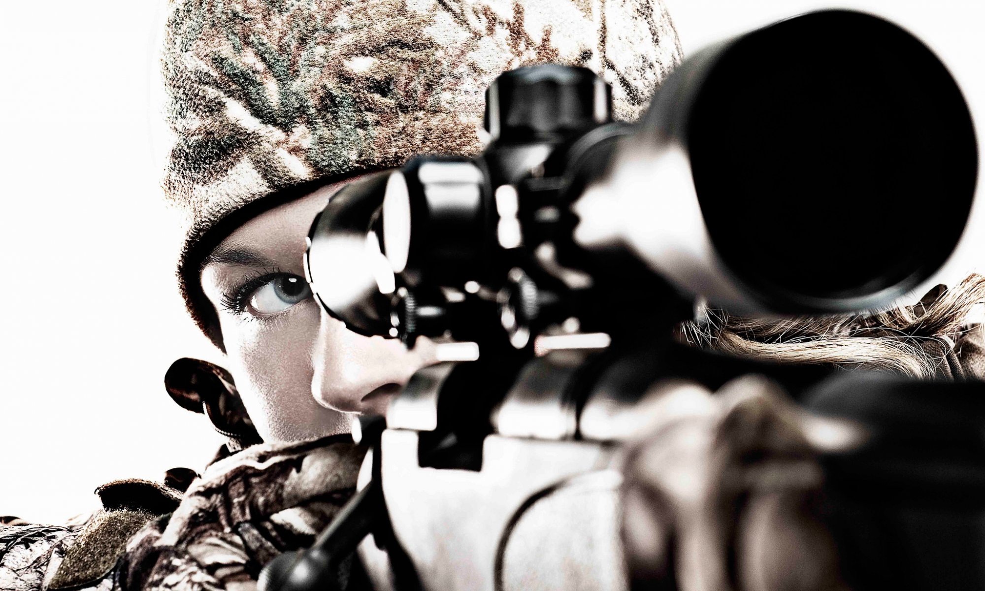 Ragazza cecchino guardando nel mirino