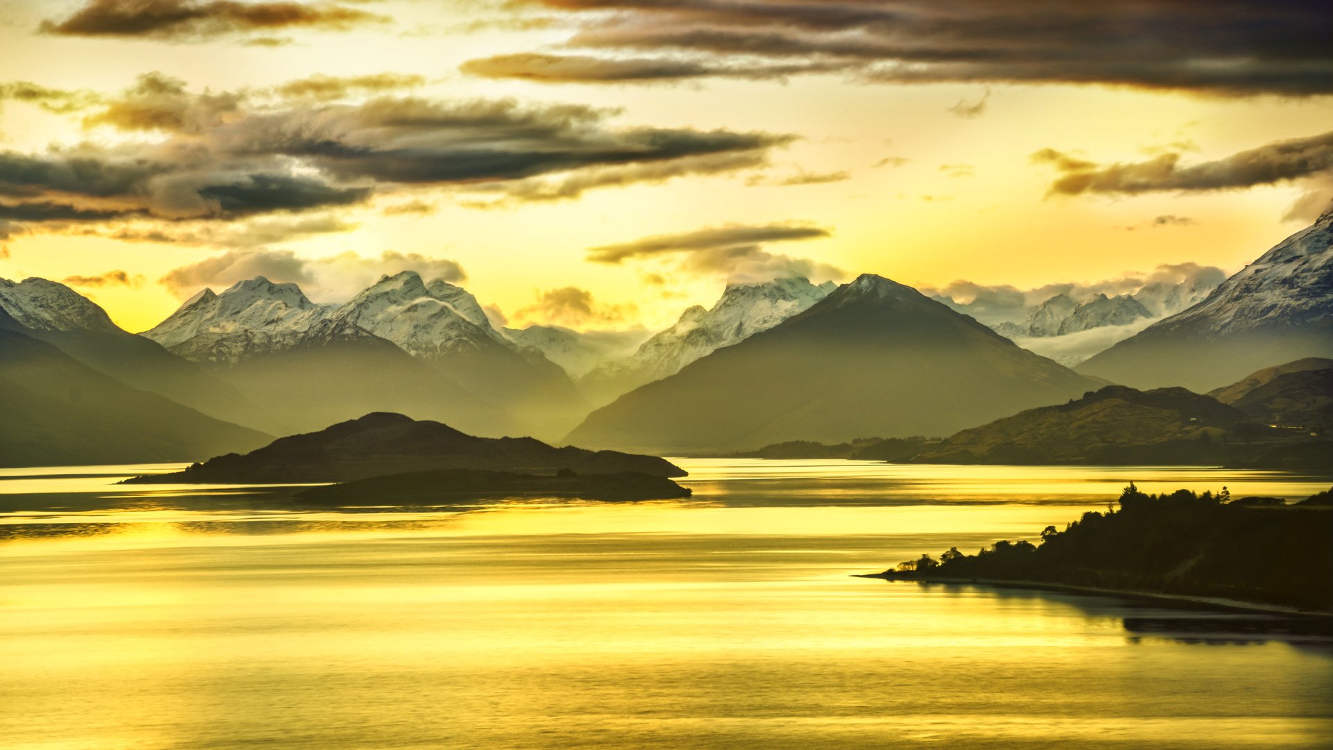 Sole sulle montagne e lago in un parco in alberta, canadaSole sulle montagne e lago in un parco in Alberta, Canada