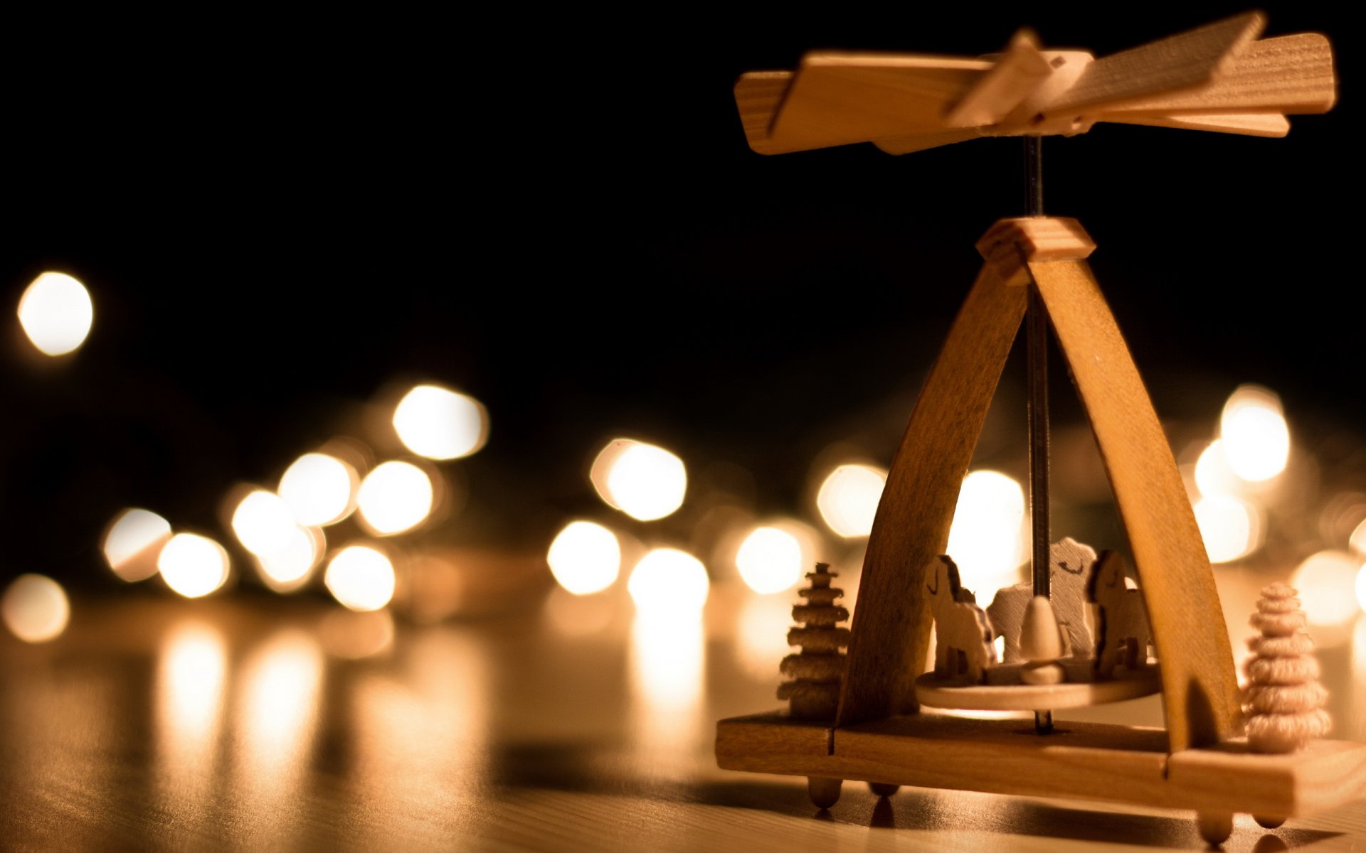 Portacandele in una casa di legno sotto l'albero di natalePortacandele in una casa di legno sotto l'albero di Natale