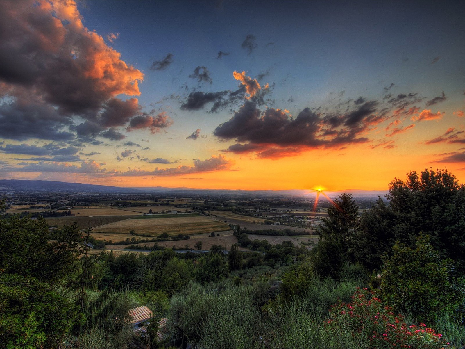 Valle verde nei raggi del tramonto