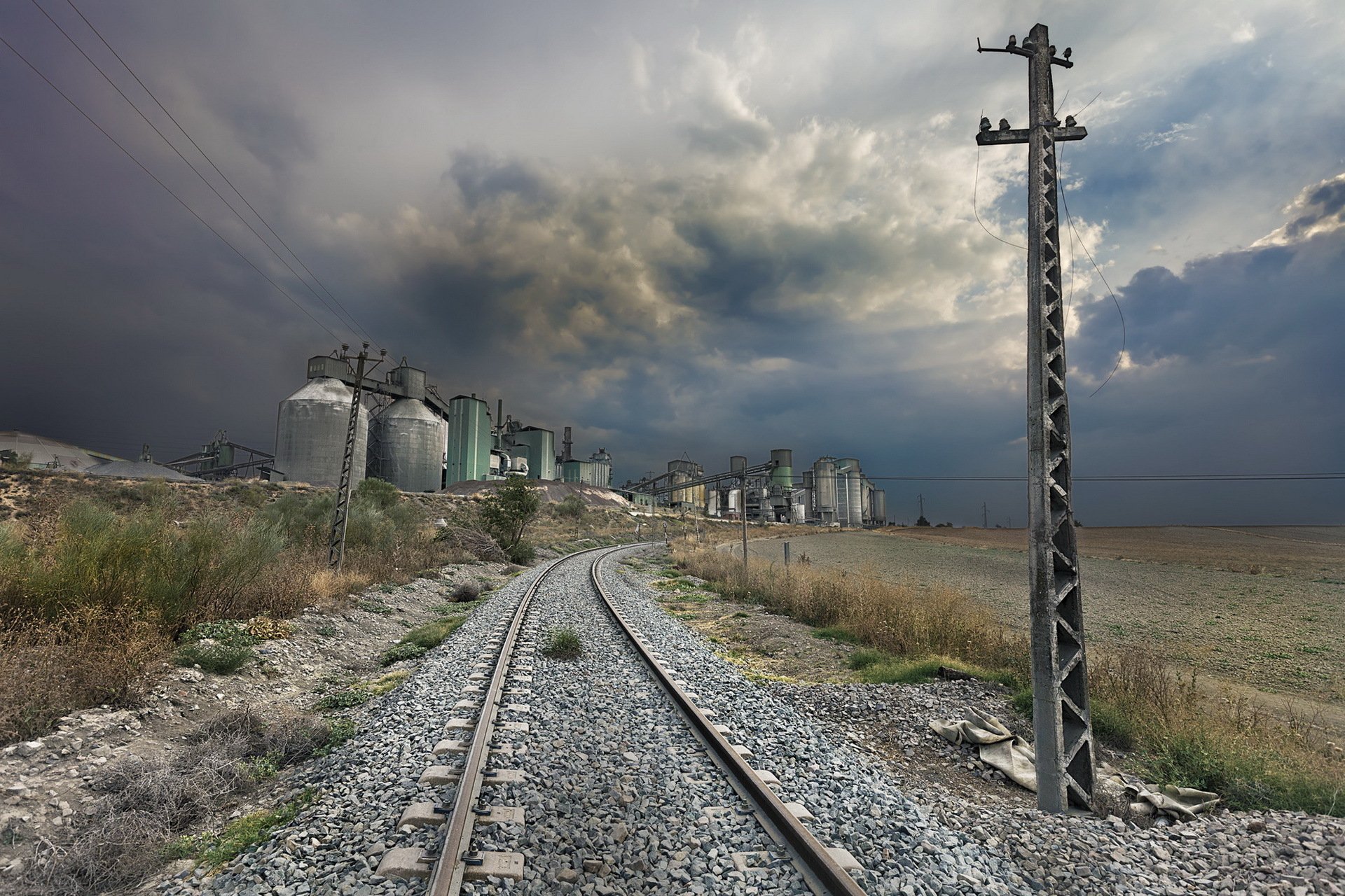 Ragazza seduta da sola di notte vicino alla ferroviaRagazza seduta da sola di notte vicino alla ferrovia