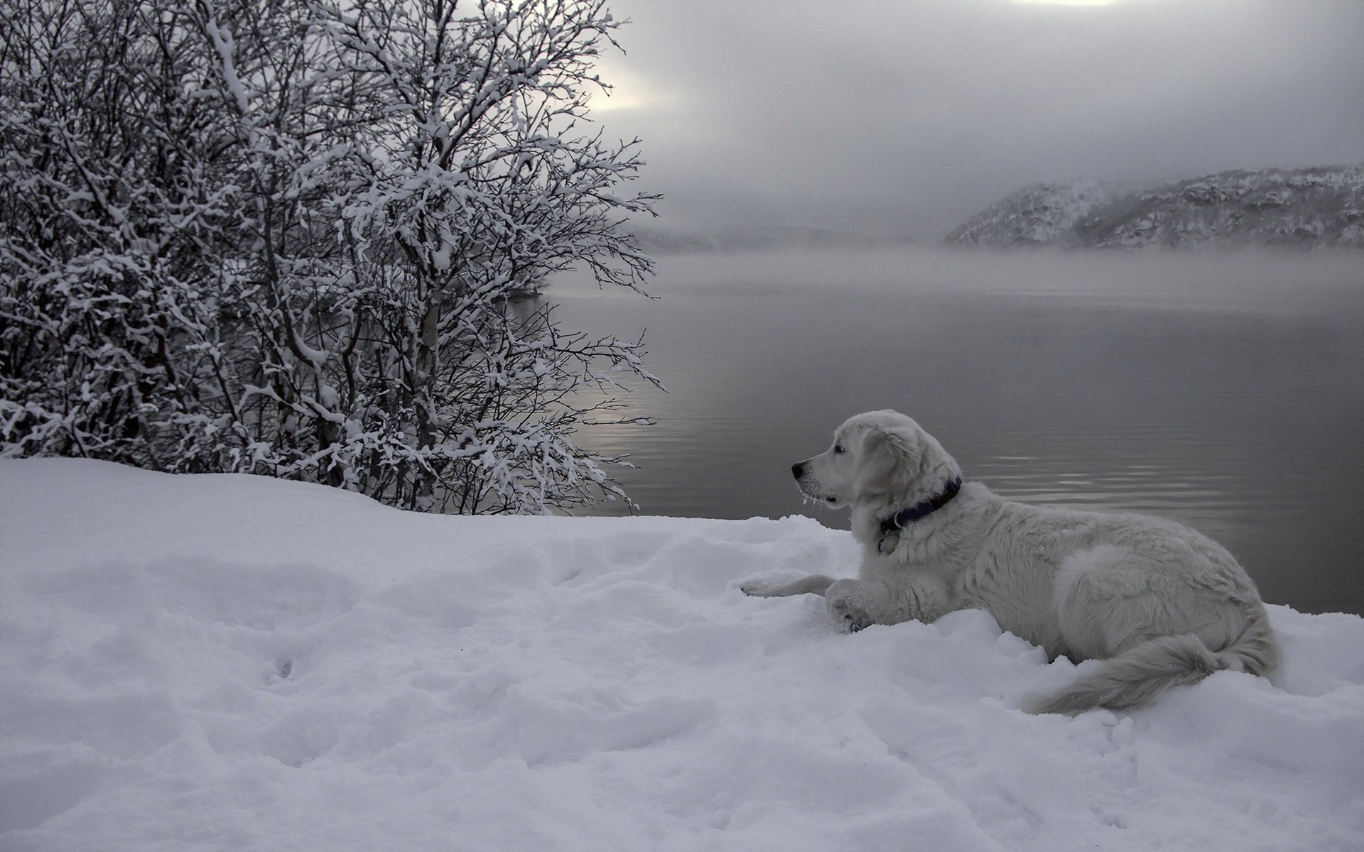 Alberi di natale sulla riva del lago sullo sfondo delle montagneAlberi di Natale sulla riva del Lago sullo sfondo delle montagne
