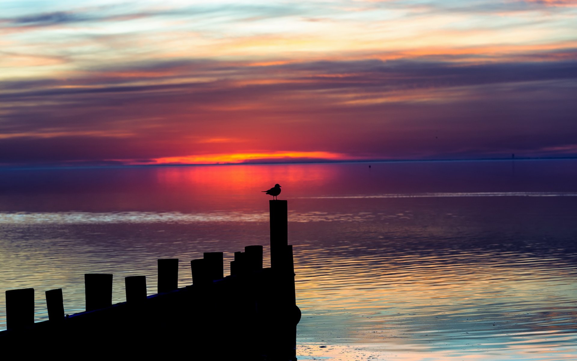 Tramonto all'orizzonte con rocce di pietra vicino al mare