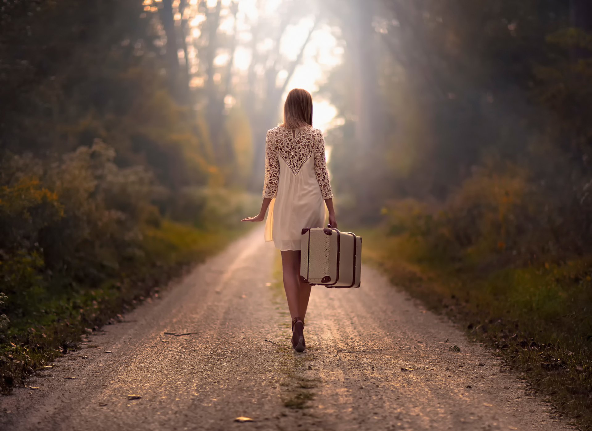 Ragazza solitaria con chemldan sulla strada