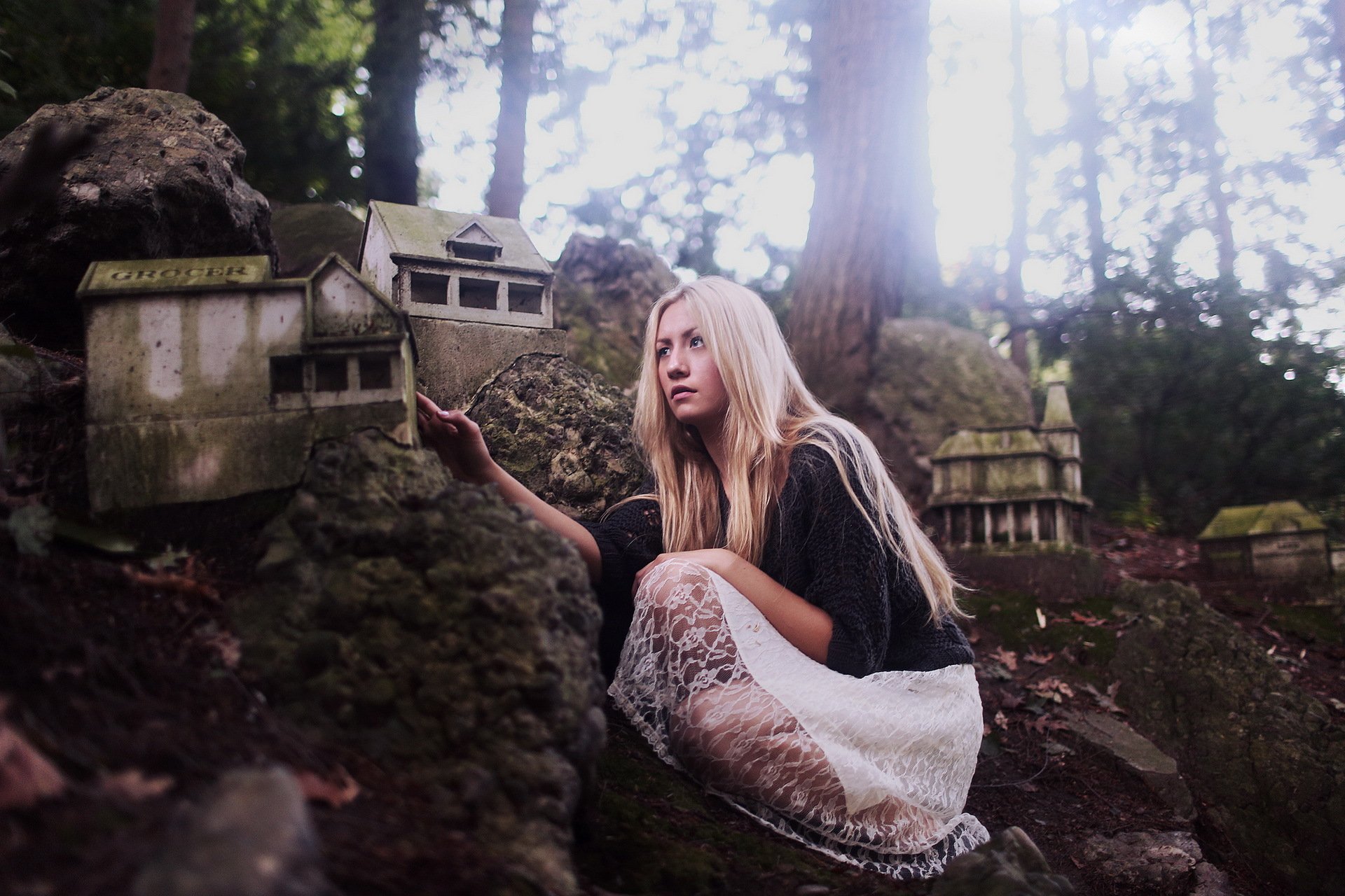 Ragazza bionda con i capelli corti in posa per una fotoRagazza bionda con i capelli corti in posa per una foto