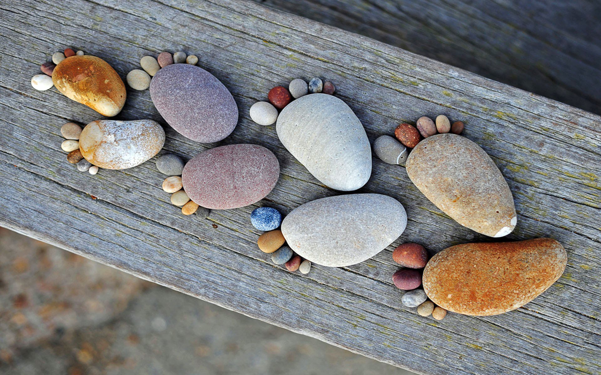 Pietre sotto forma di impronte umane su una tavola