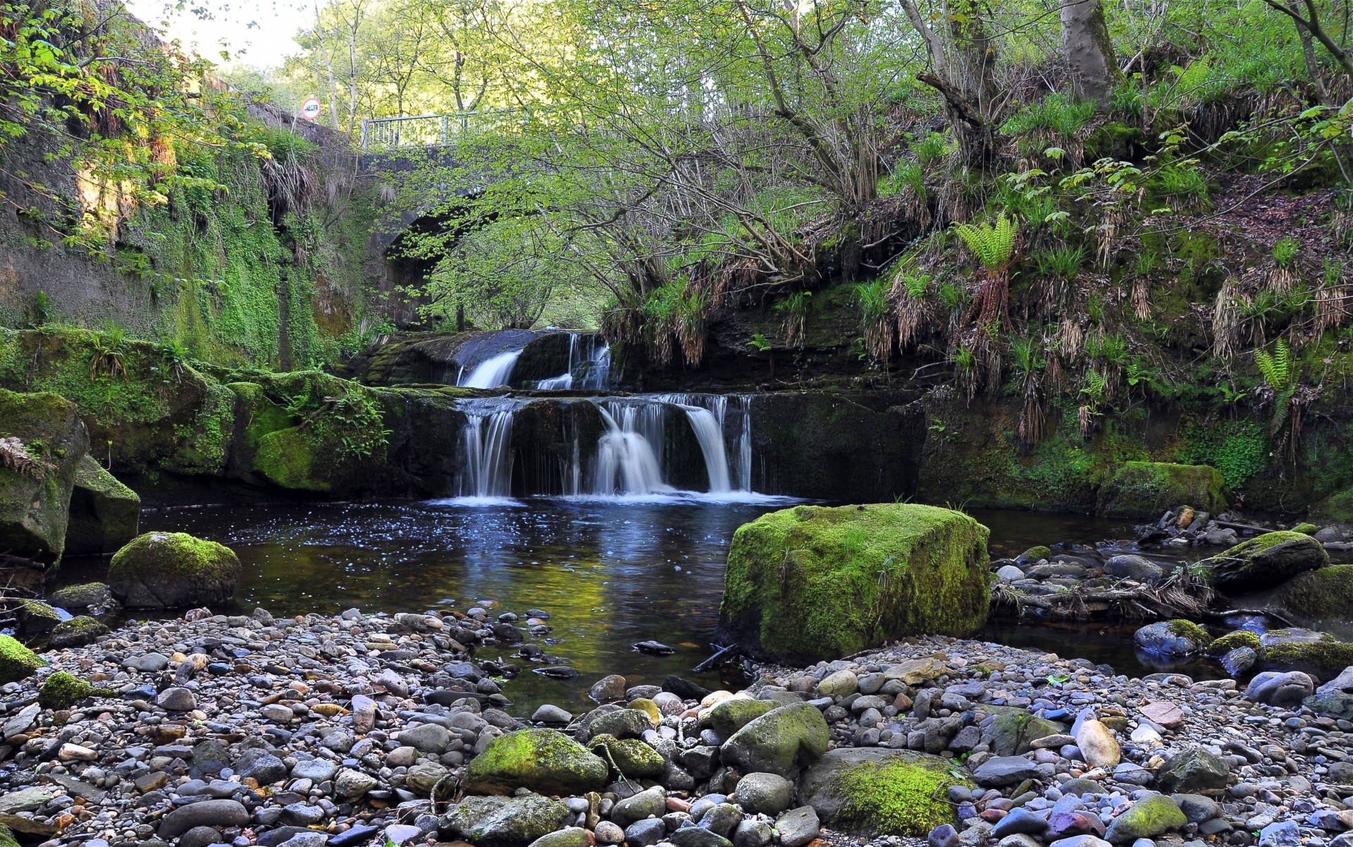L'acqua della cascata filtra attraverso grandi rocceL'acqua della cascata filtra attraverso grandi rocce