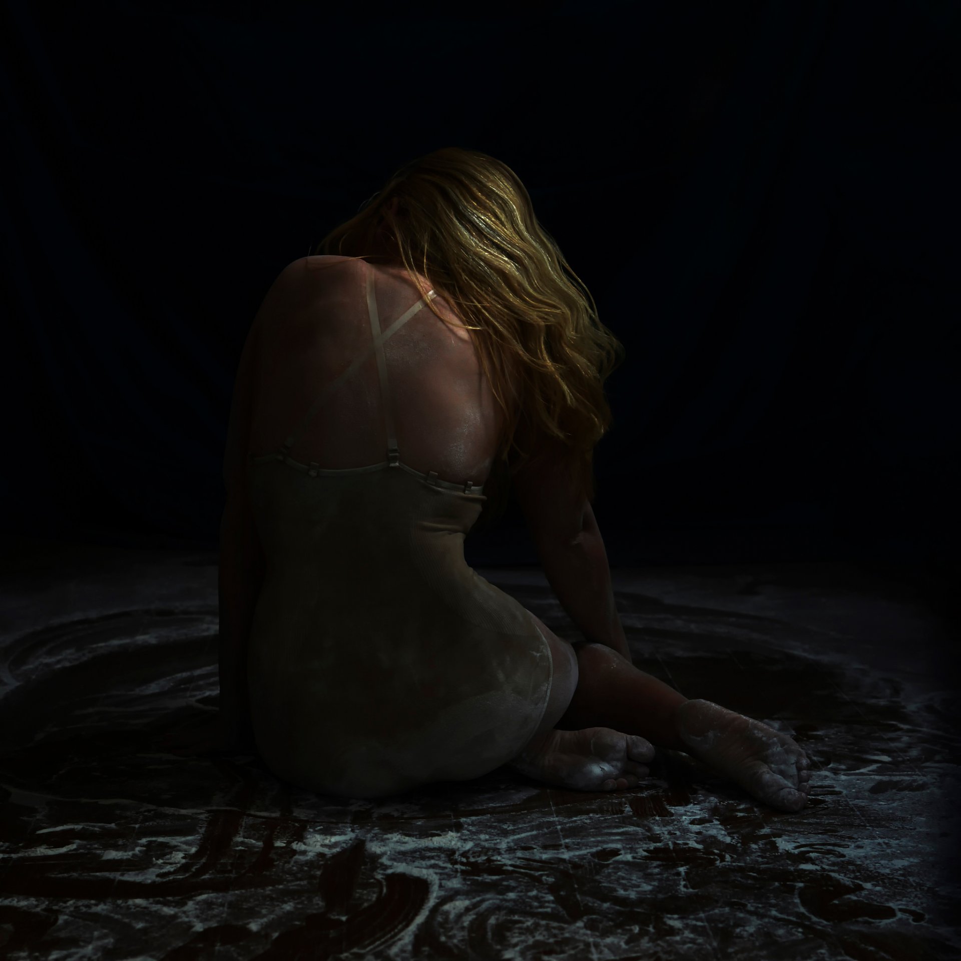 La ragazza con il fiore nei capelli balla nel centro della stanza