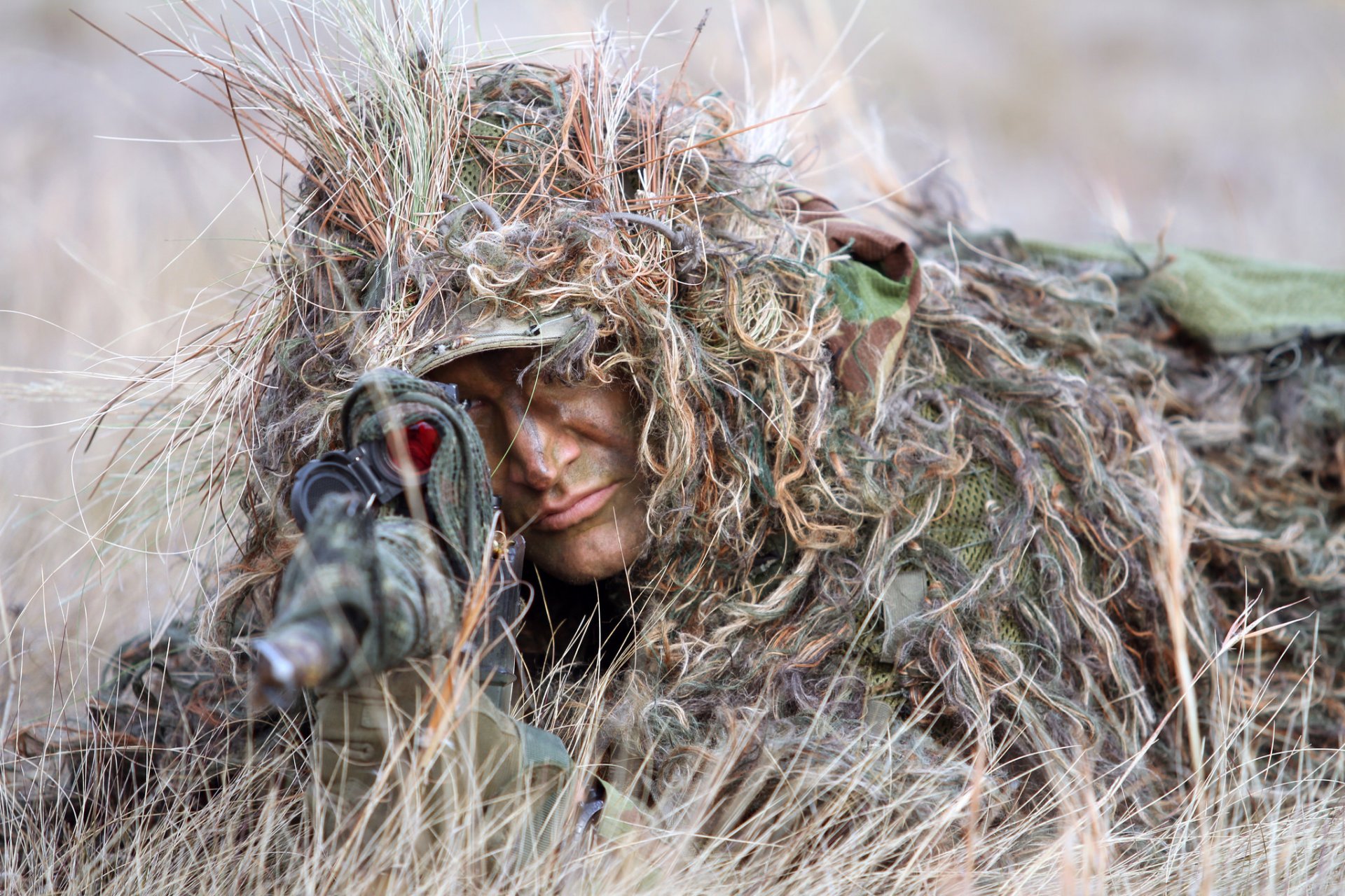 Fucile da cecchino con mirino nella foresta sull'erbaFucile da cecchino con mirino nella foresta sull'erba