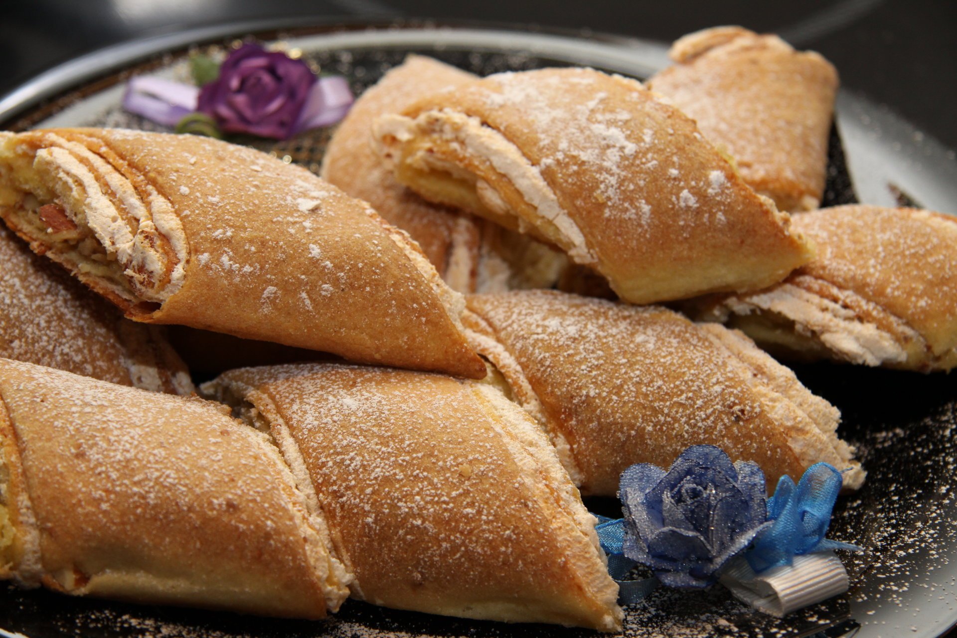 I biscotti a forma di rotolo sono decorati con fioriI biscotti a forma di rotolo sono decorati con fiori